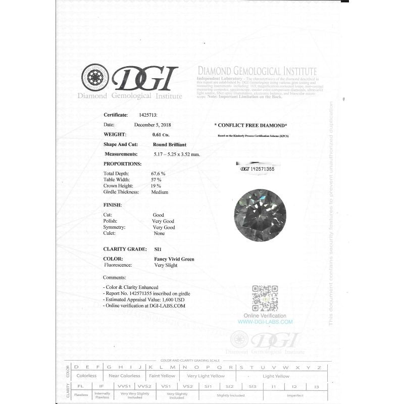 Fancy Vivid Green Color l SI1 Clarity l Good
