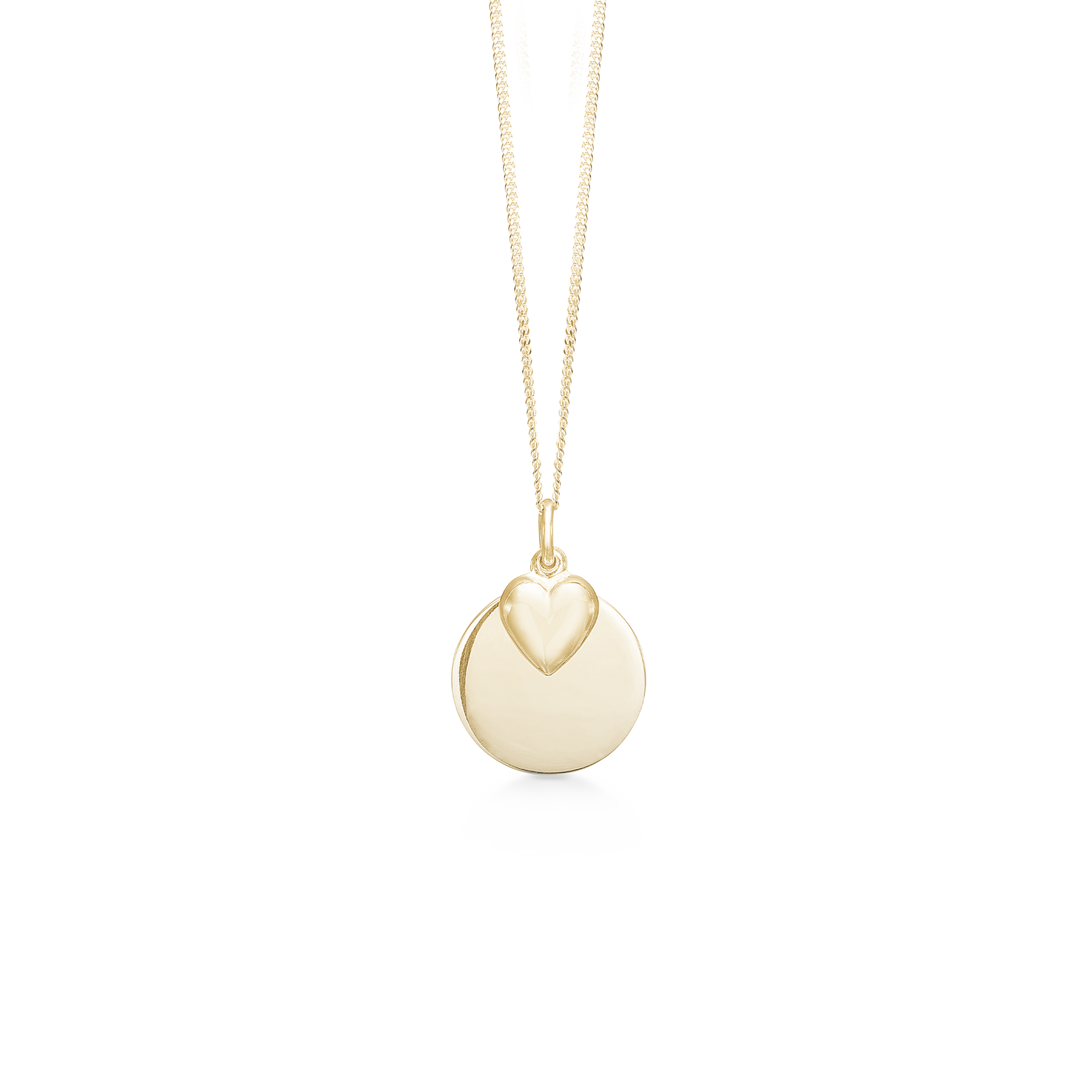 Halskæde med Vedhæng Blank Plade + Hjerte Forgyldt Sterling Sølv 40 cm