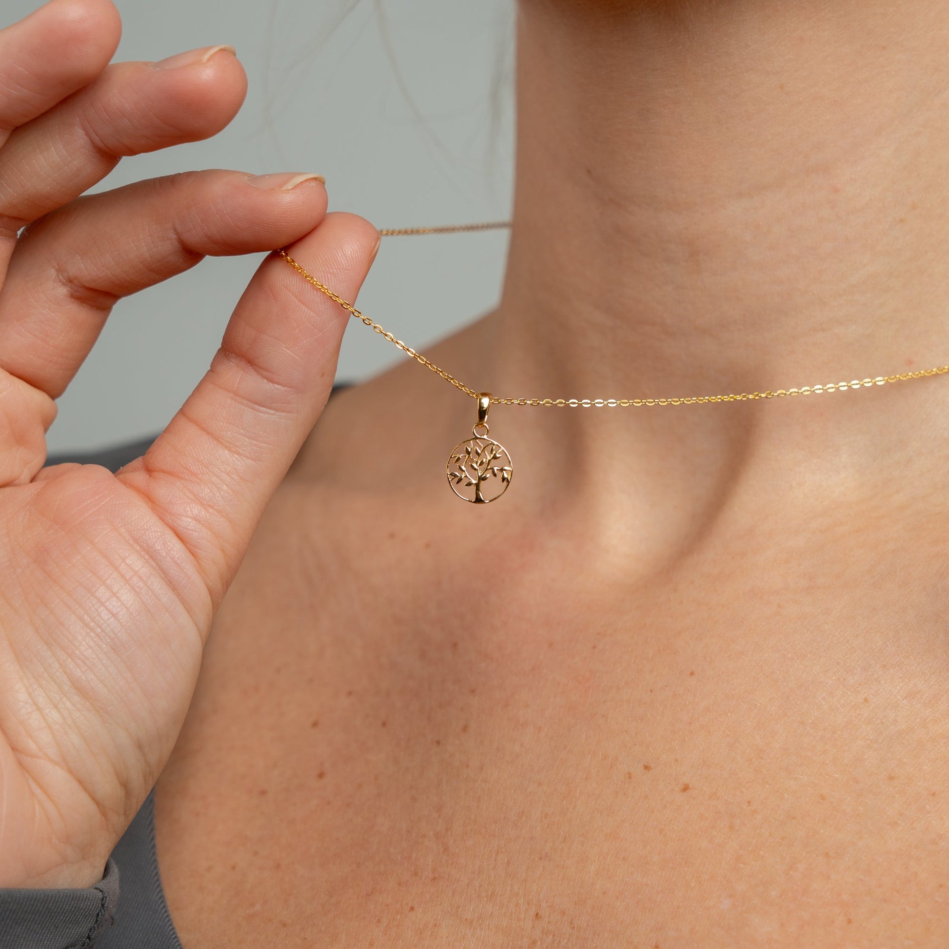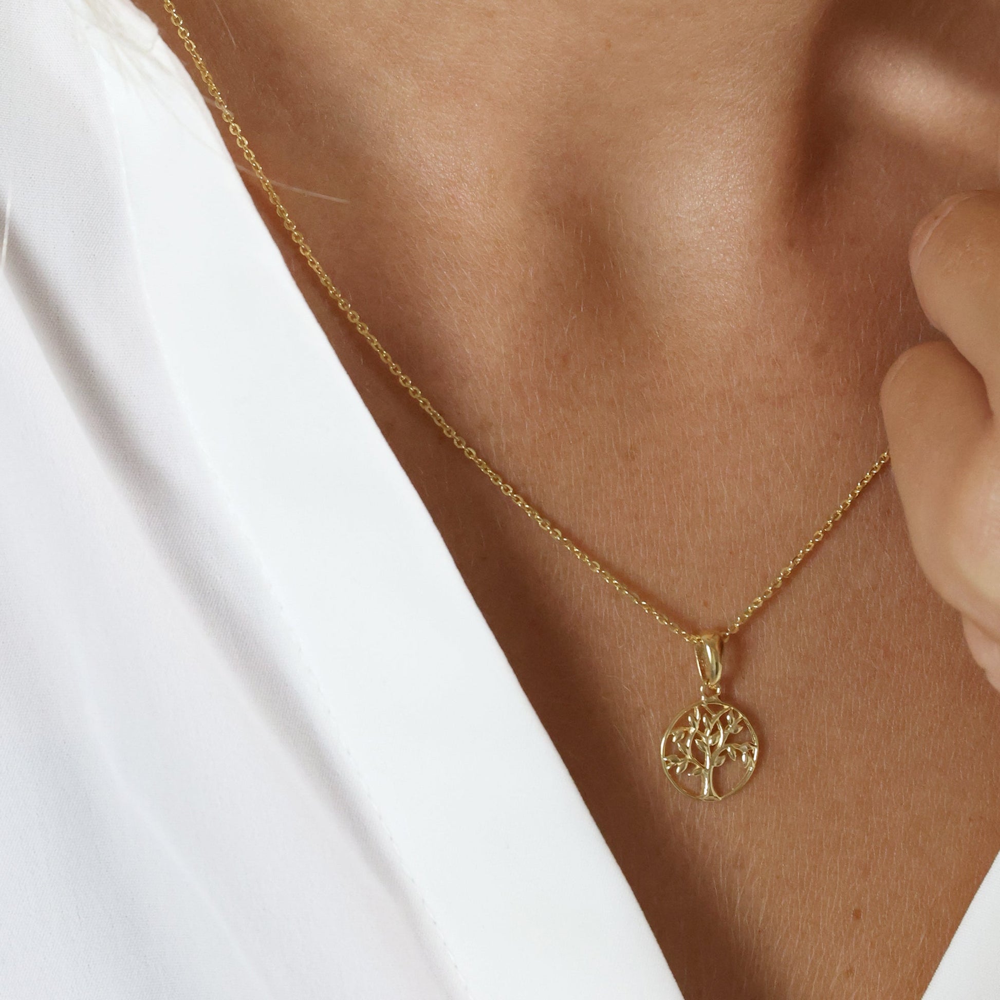 Halskæde med Vedhæng Livets Træ 8 Karat Guld Forgyldt Sterling Sølv Kæde 45 cm