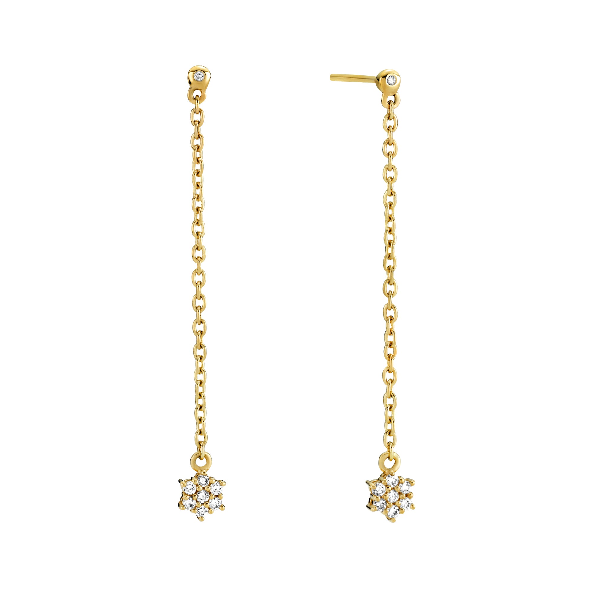 14 kt. guld ørehænger roset med diamanter 16x0,01ct W.SI. længde 4,5cm