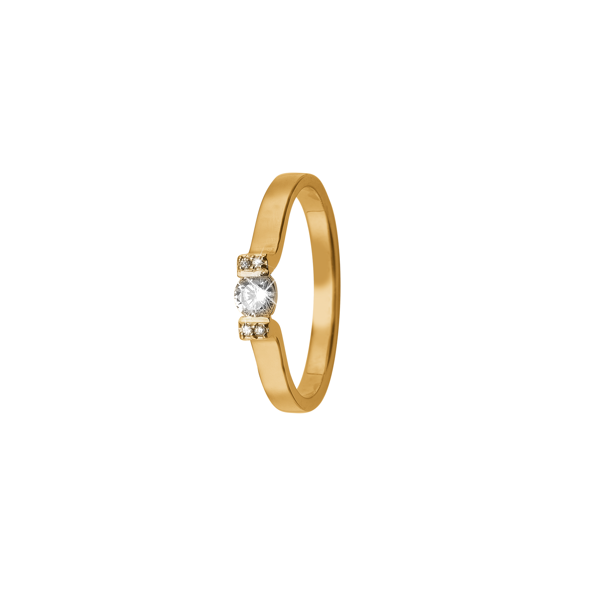 Ring 14 Karat Guld Med 1x0,10 ct og 4x0,005 ct W/PI Diamanter