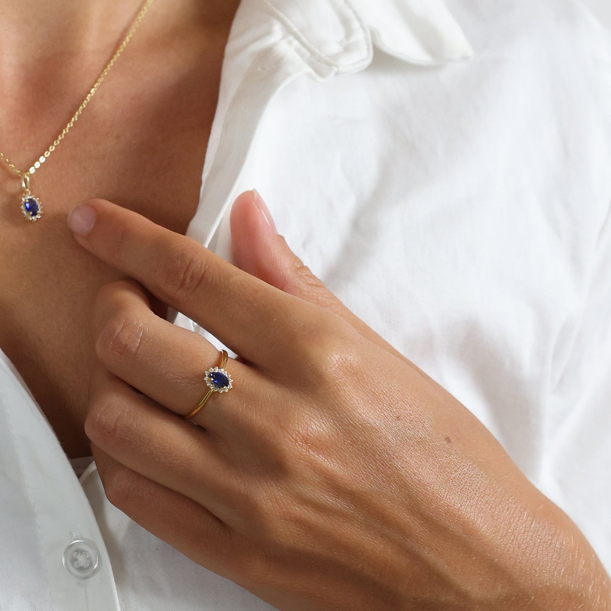 Ring 8 Karat Guld Safir x 1 Diamanter 16 x 0,0025 Ct. W/PI