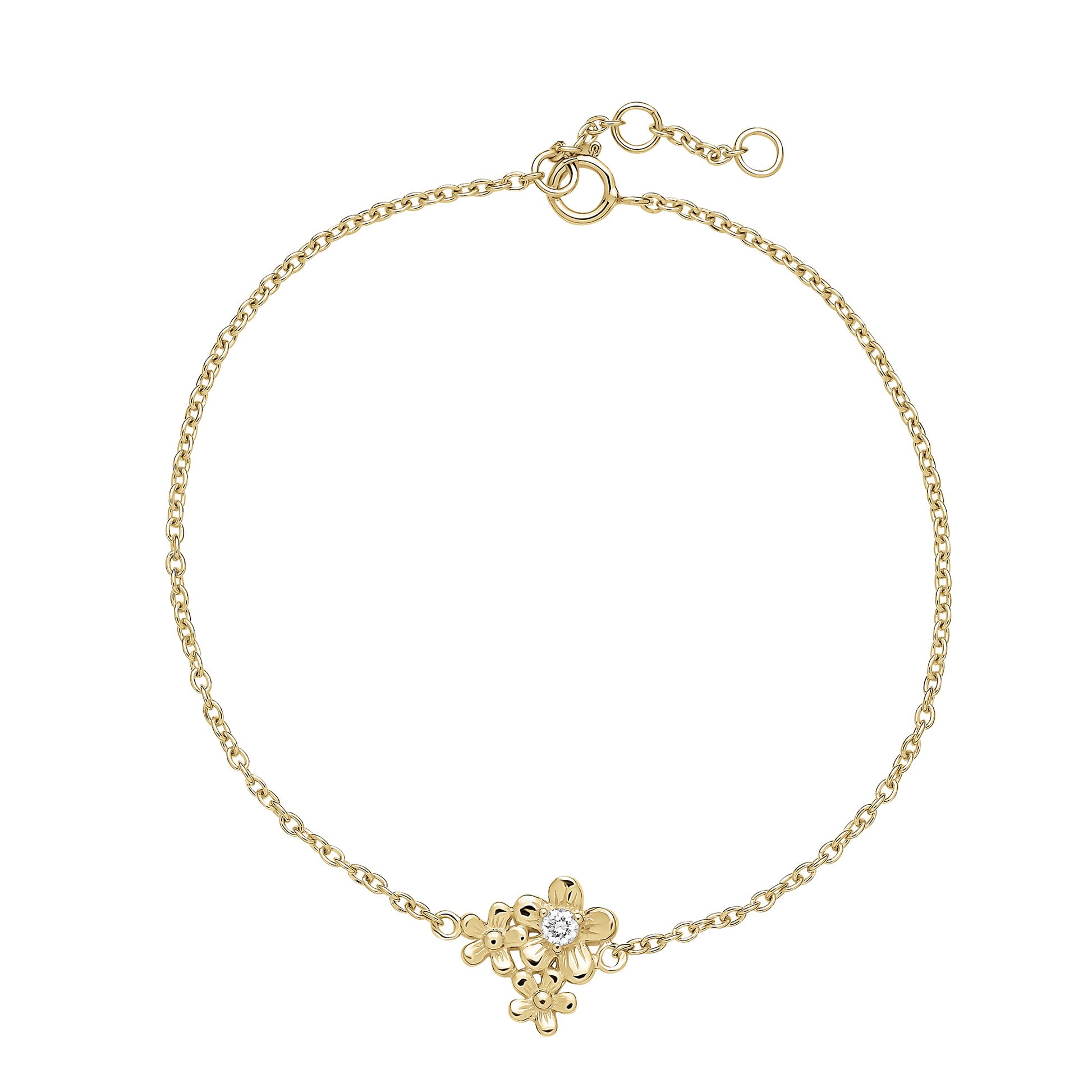 8 kt. guld armbånd blomst og diamant 0,07 ct 17-18-19 cm