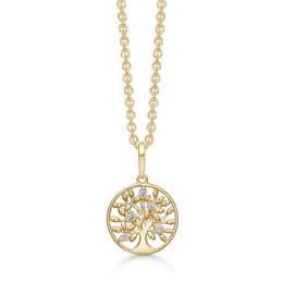 8 kt. guld halskæde livets træ i cirkel med syntetiske cubic zirconia.