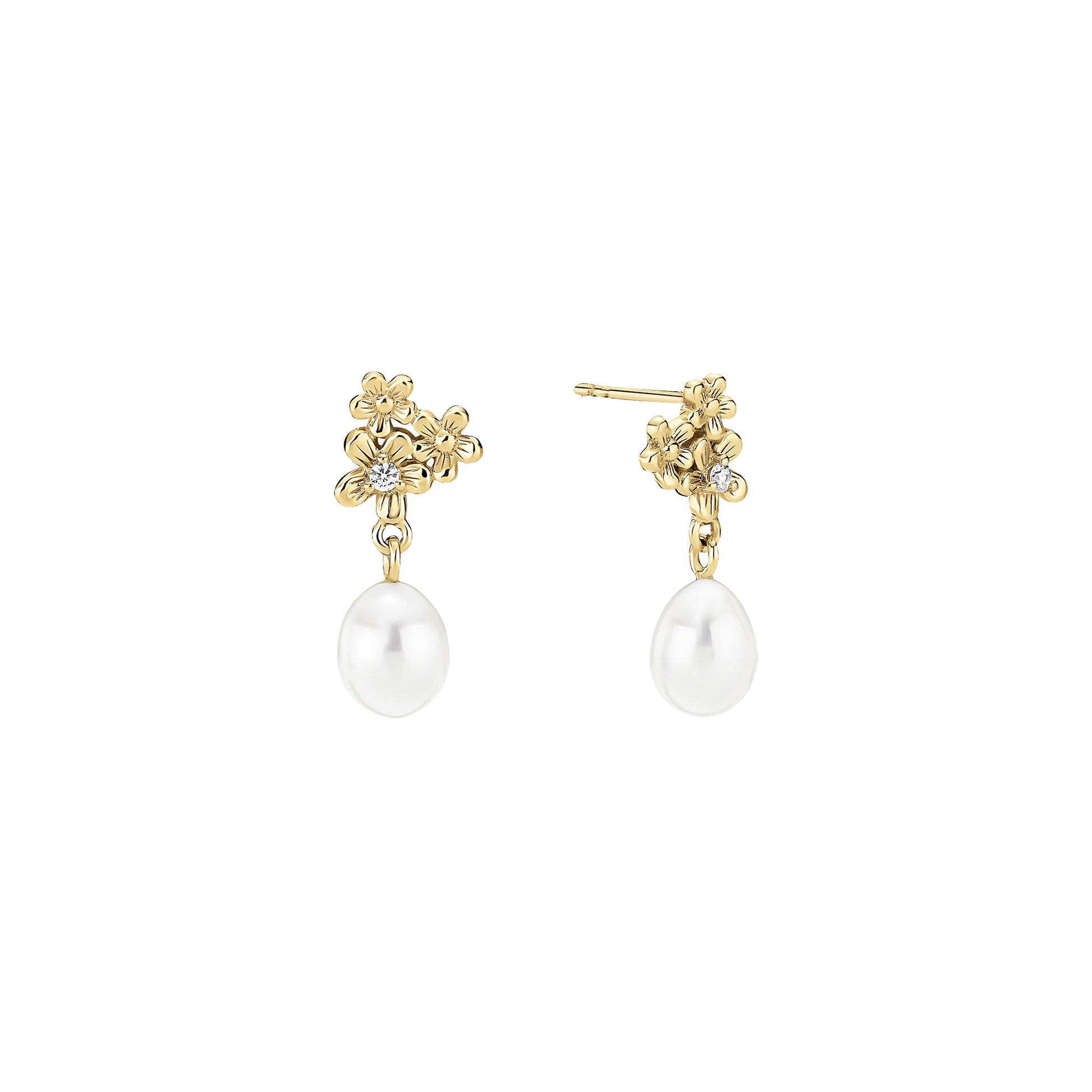 8 kt. guld ørestikker med ferskvandsperle 6,5-7 mm og zirkonia