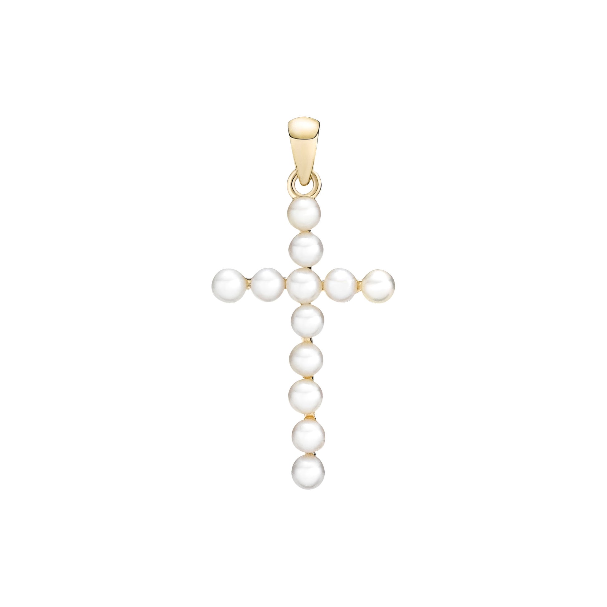 8 kt. guldvedhæng kors 25x15mm med ferksvandsperler