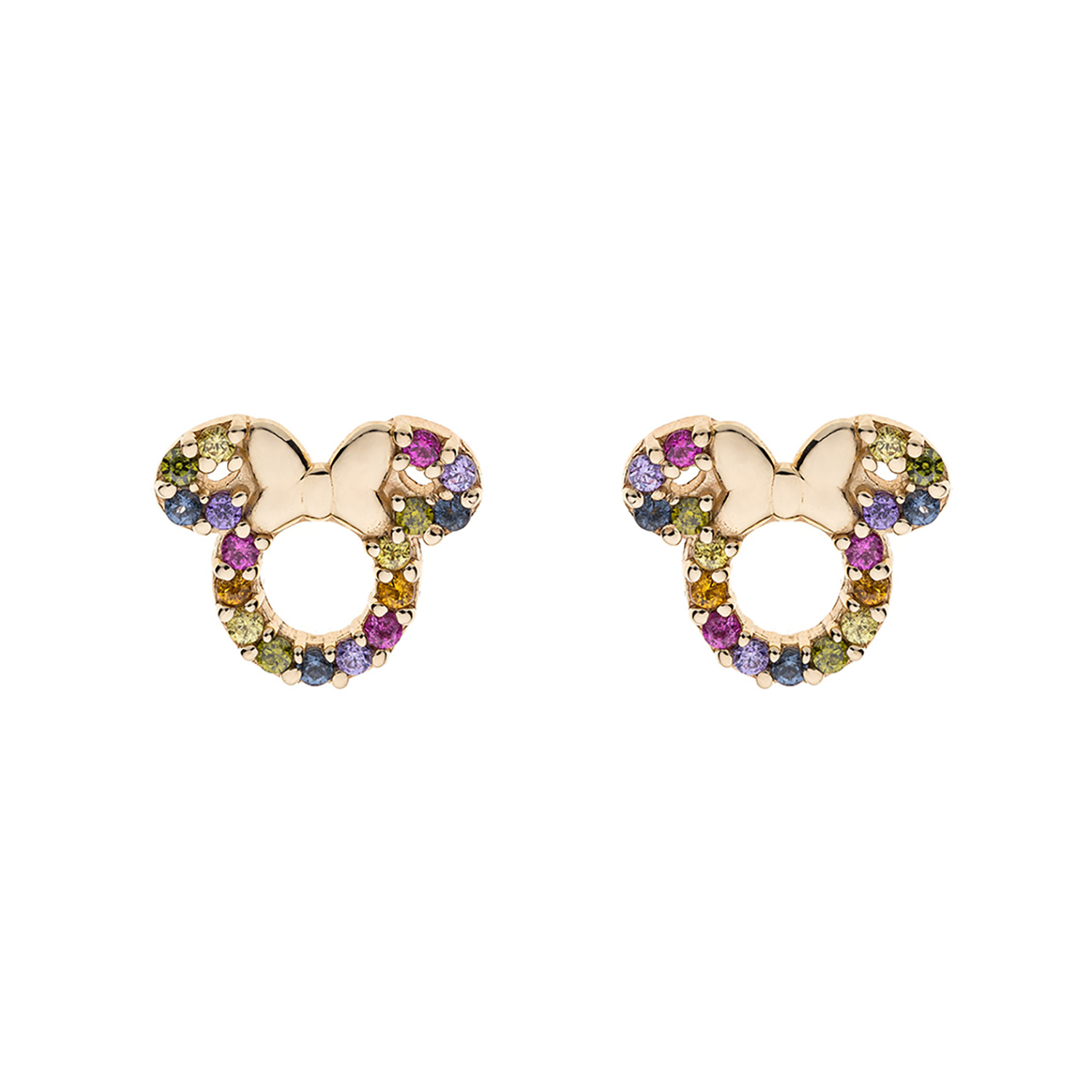 9 kt. guld ørestikker Minnie Mouse med multi farver.