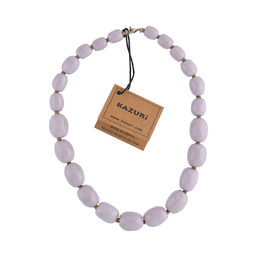 Perlekæde med ovale perler i forløb. Flot ensfarvet lilla. Mål: Ca 48 cm.