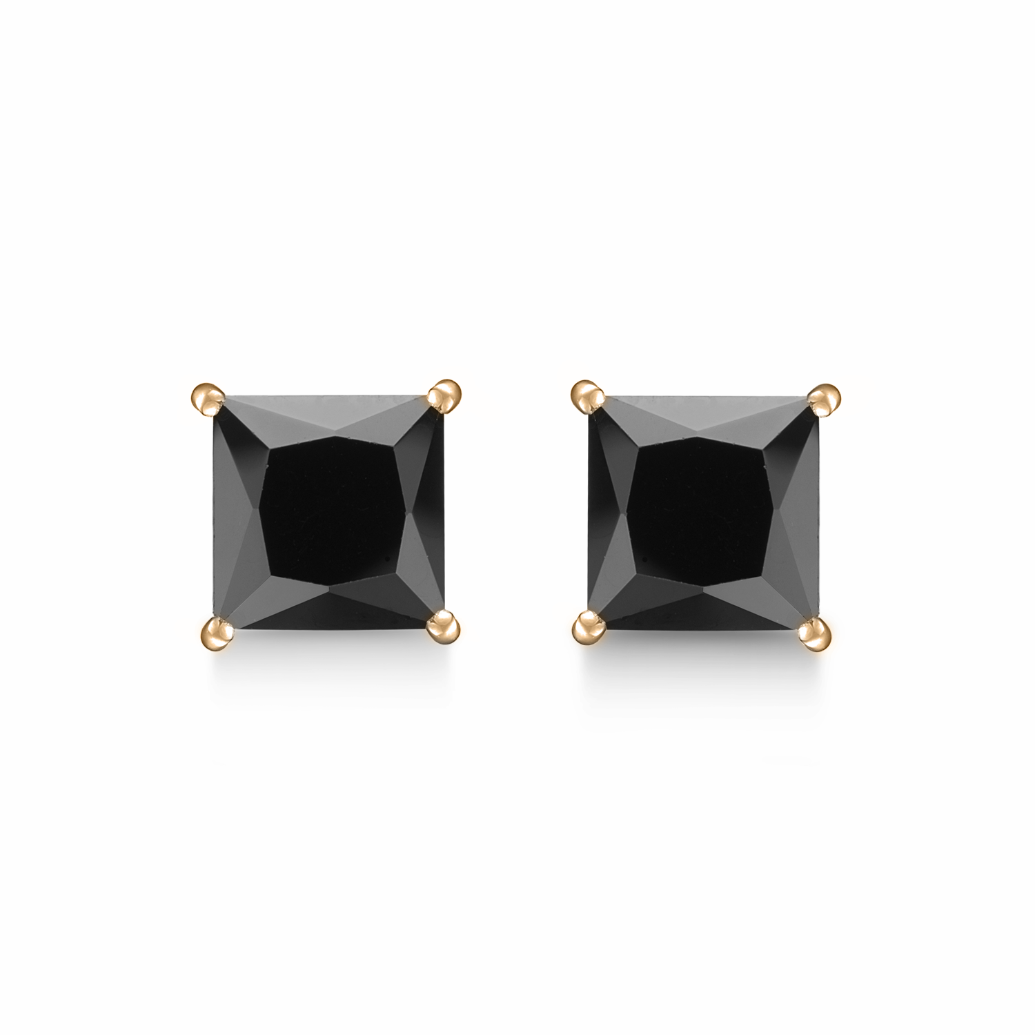 Guldbelagt sølvørestikker, isat sort Zirconia, Princess Cut, 3 mm - 8 mm.