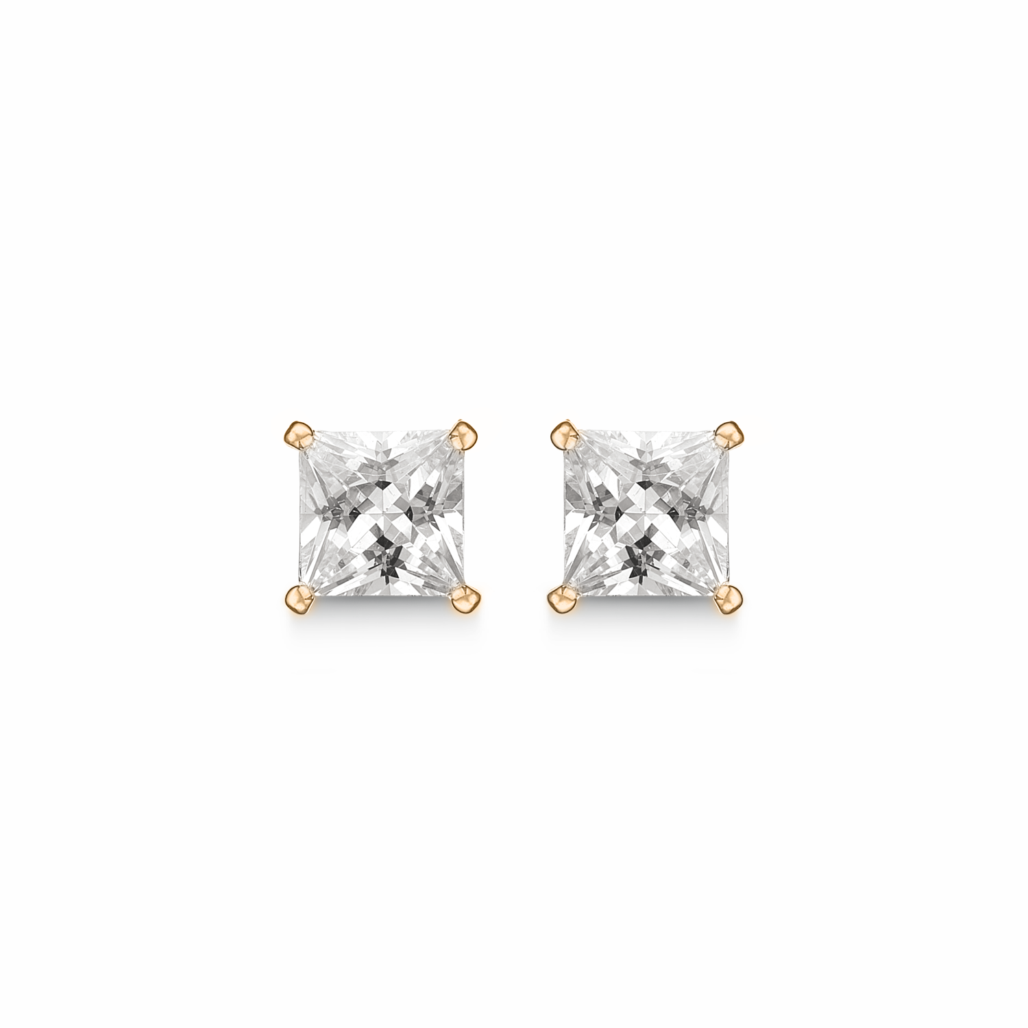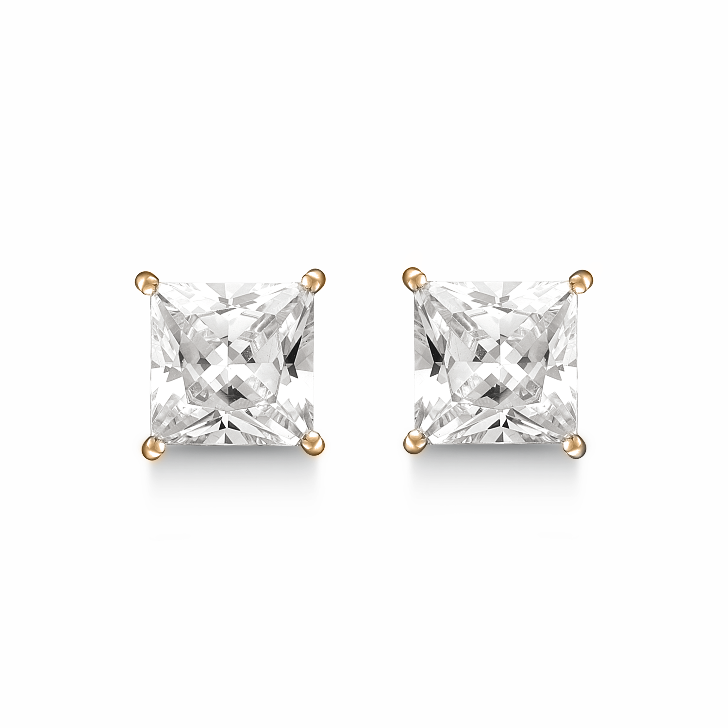 Guldbelagt sølvørestikker Zirkonia Princess Cut 3 mm - 8 mm ( 0,20 ct - 3 ct. )