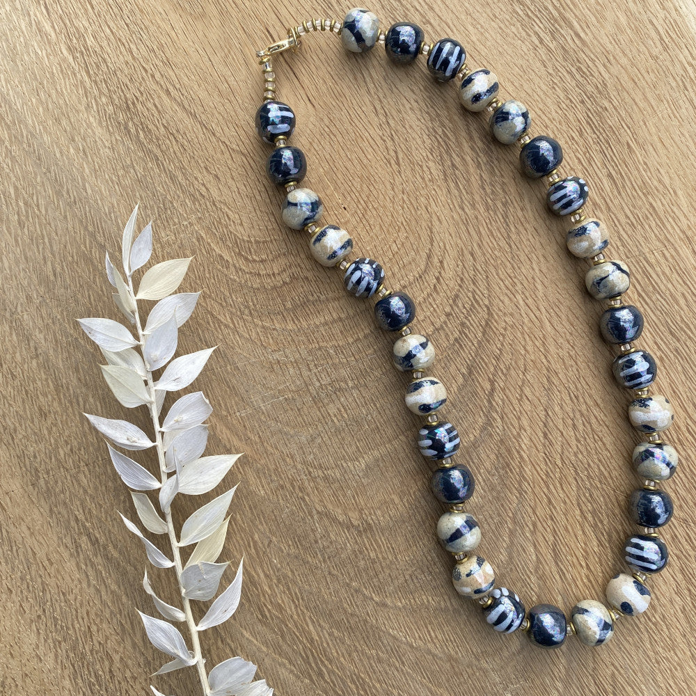 Hver perle er håndlavet, håndmalet. Fra Mount Kenya. Fair Trade. Mange års erfaring med glasurer, brænding og design gør hvert enkelt smykke særdeles smukt og unikt.