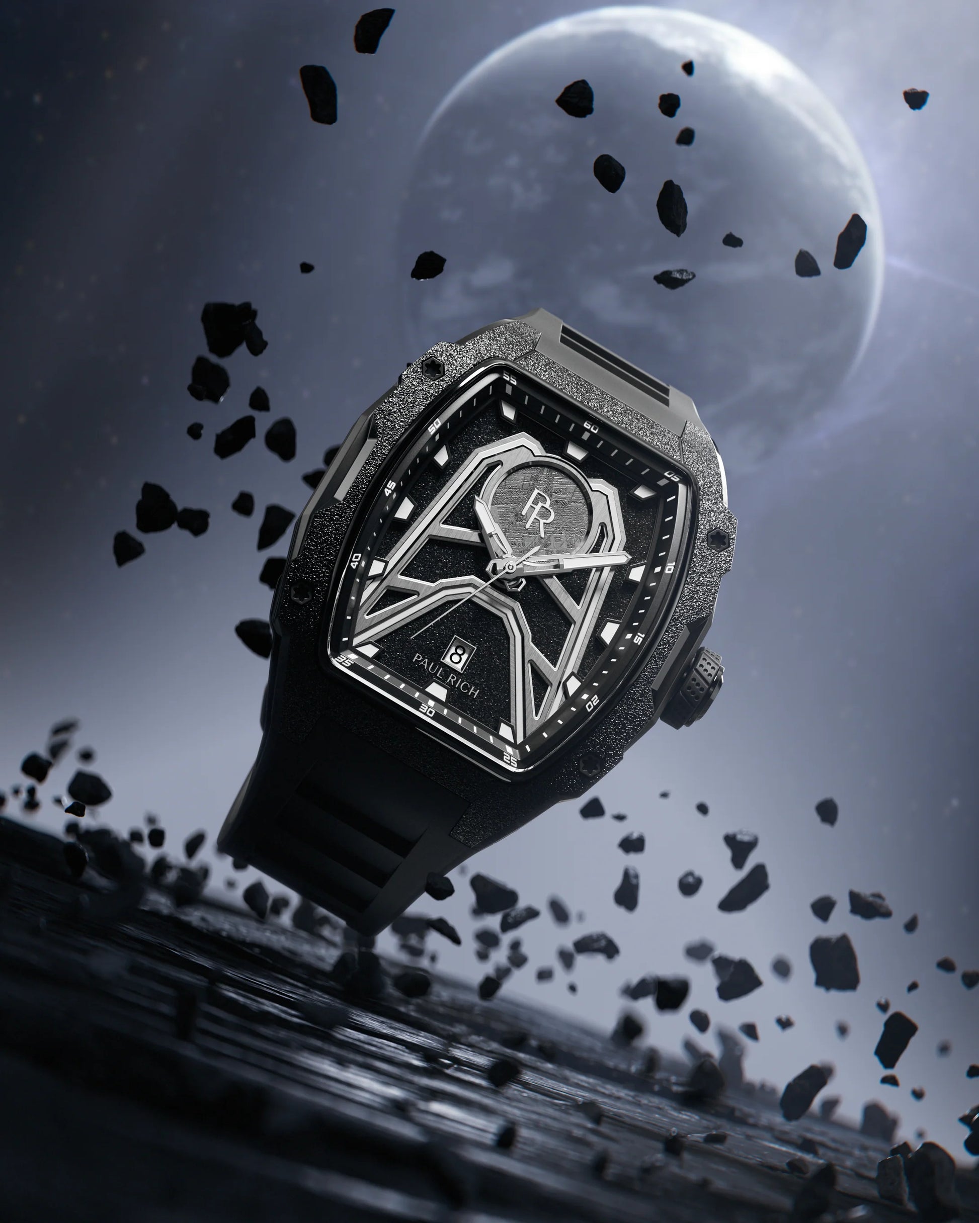 The Paul Rich Astro Meteora Collection brings the wonders of the cosmos to your wrist with genuine meteorite dials. Each watch features a dial crafted from ancient meteorite material, showcasing unique, intricate patterns that have formed over millions of years. Inspired by space exploration, the collection merges sleek, modern design with the timeless beauty of the universe. From the frosted stainless steel case to the luminous hands and detailed case back, every element is meticulously crafted, making the Astro Meteora Collection a celebration of exceptional craftsmanship and the cosmos.