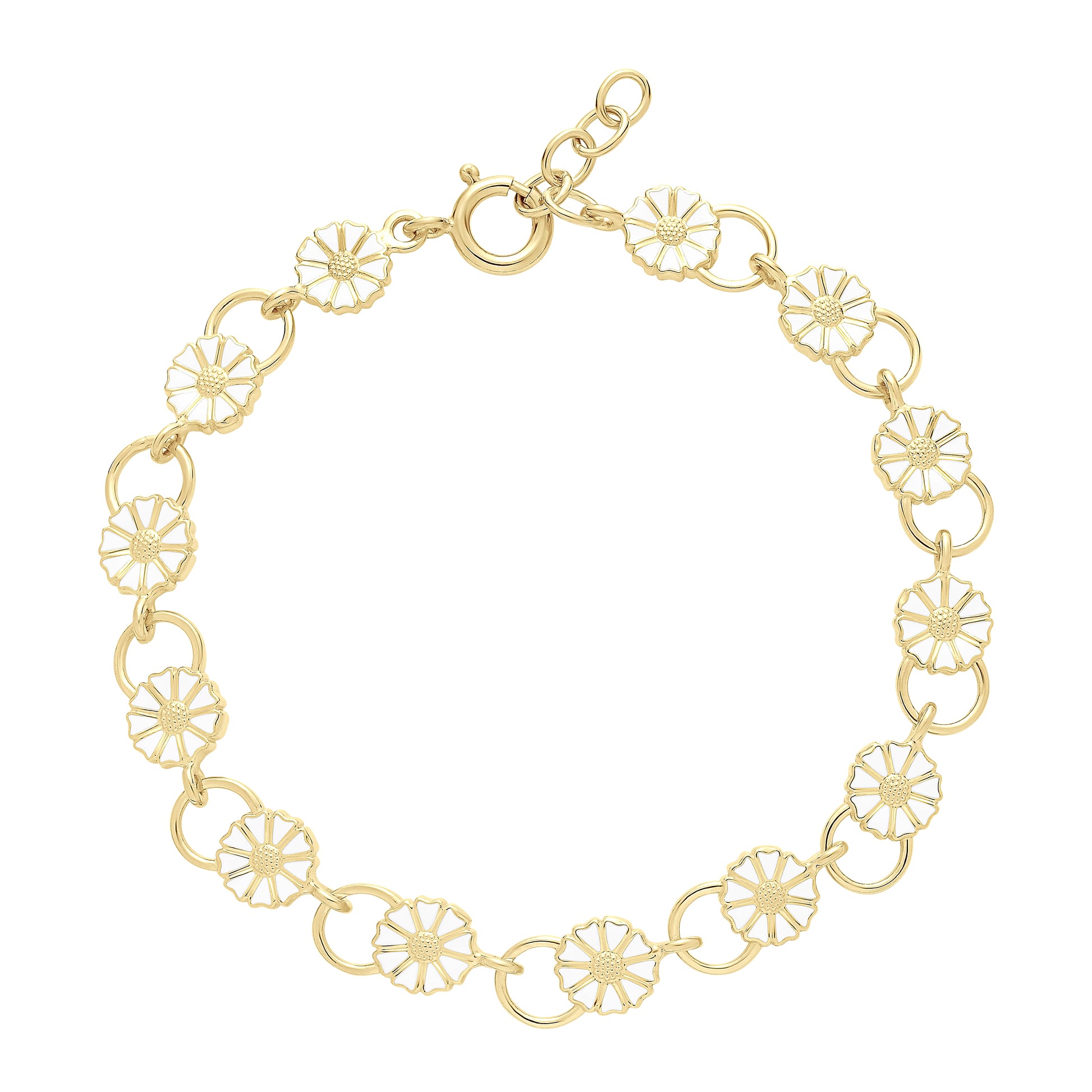 Marguerit armbånd 24 kt guldbelagt med hvid emalje 19-21cm
