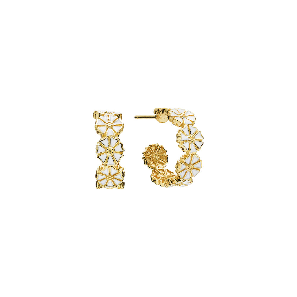 Marguerit creol, 24 kt guldbelagt sølv,hvid emalje