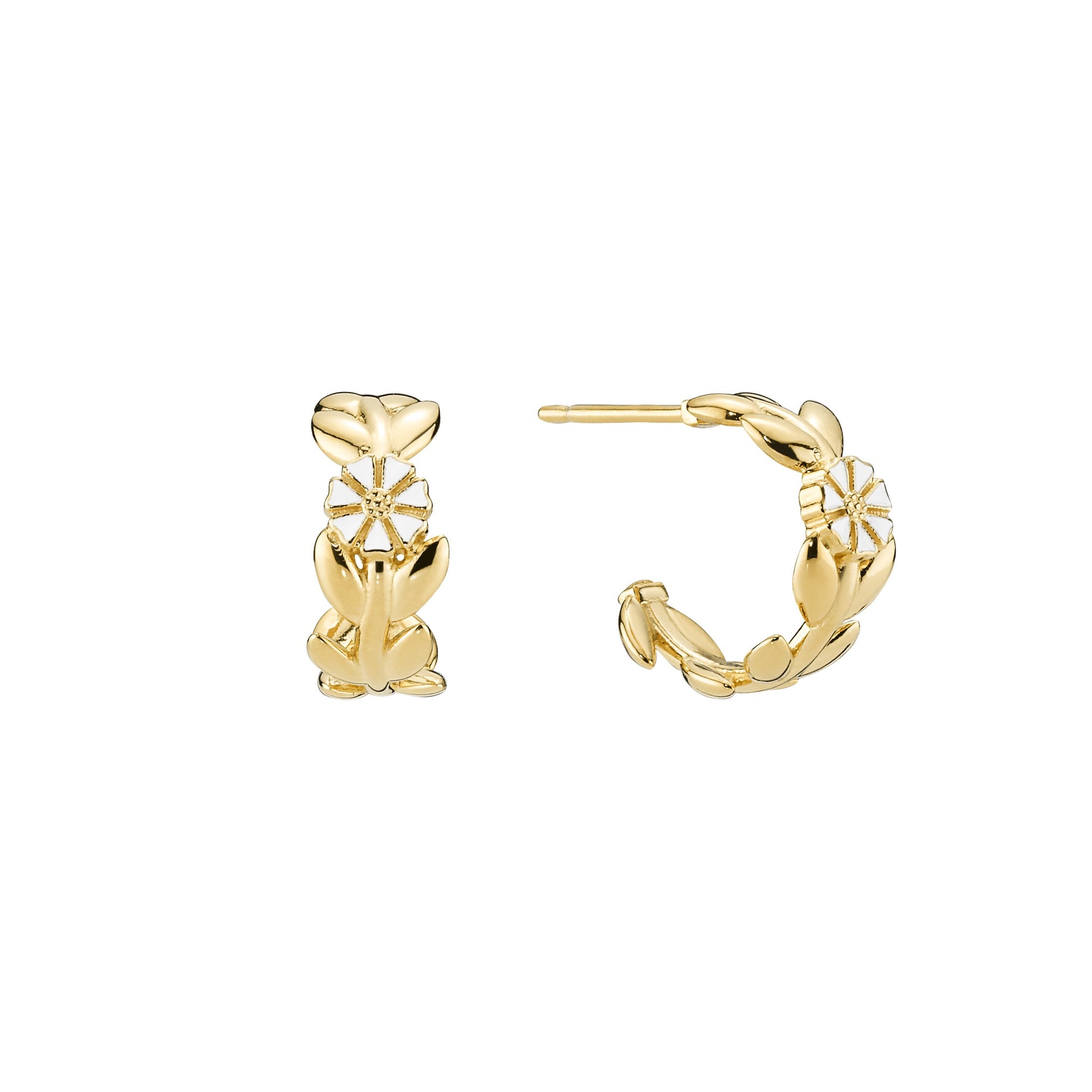 Marguerit creol, 24kt guldbelagt sølv, hvid emalje