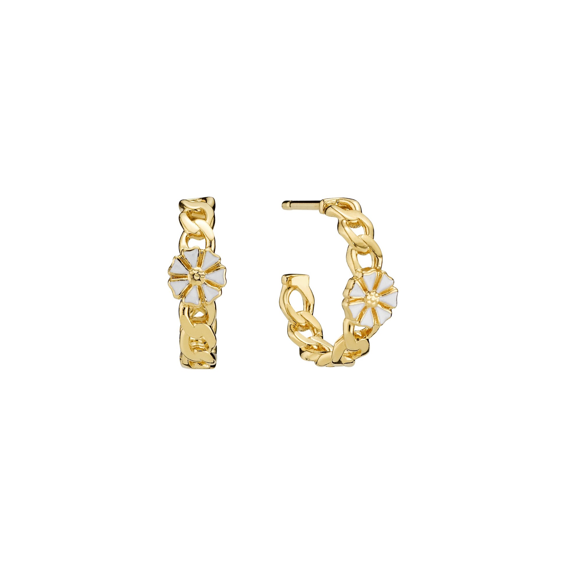 Marguerit creol panser 5 mm 24kt forgyldt hvid emalje 925 sølv