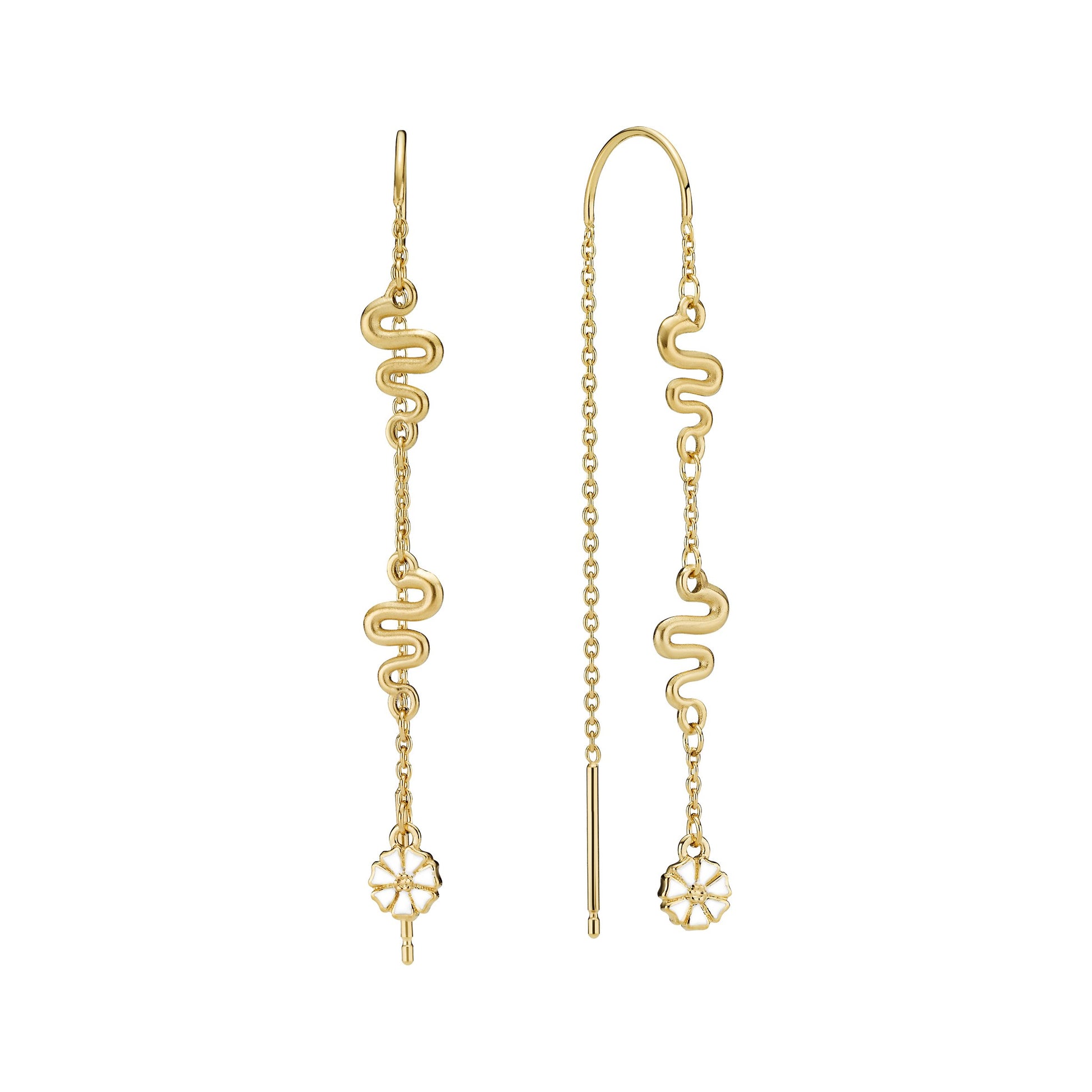 Marguerit ørehænger, bølge, 24kt guldbelagt med hvid emajle