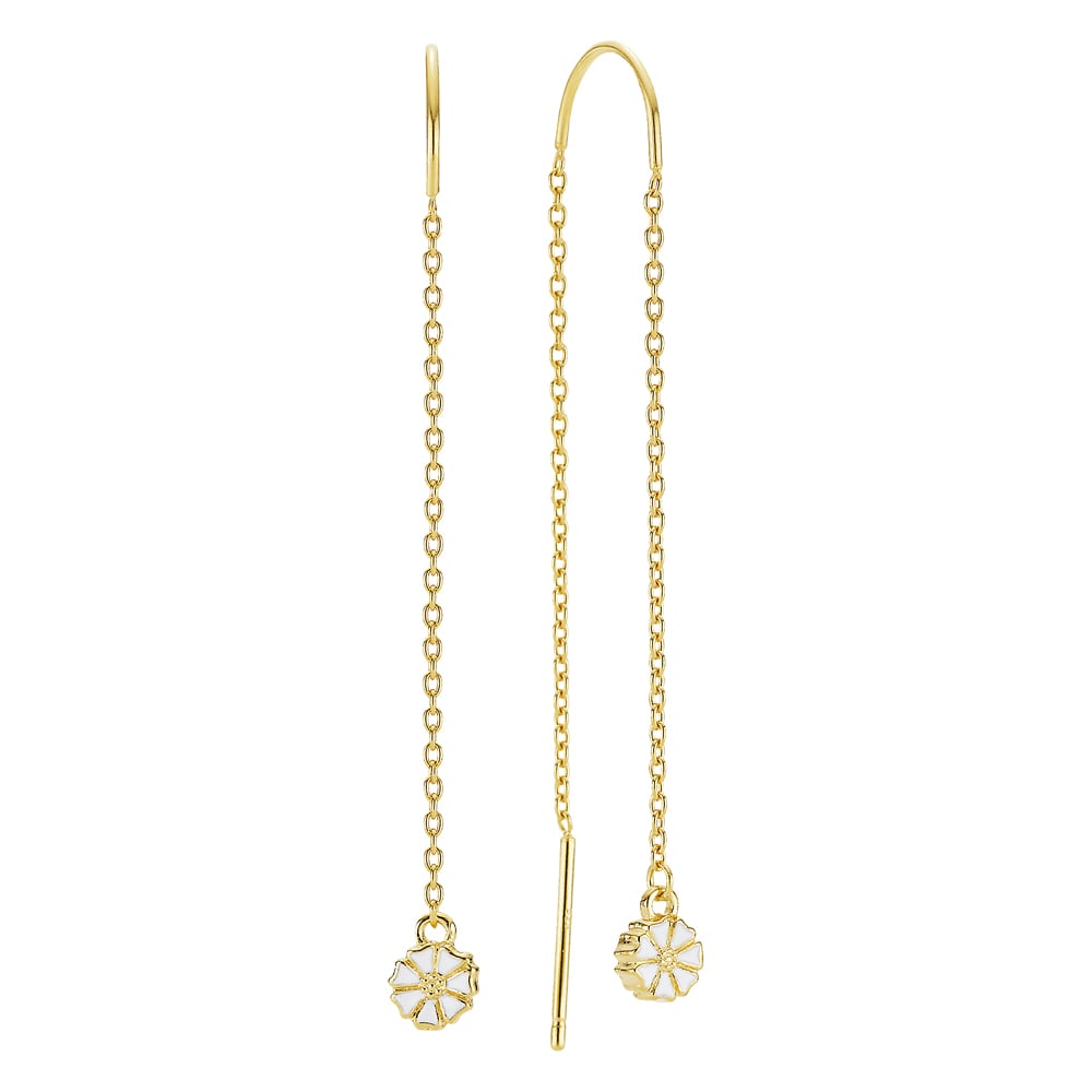 Marguerit ørehænger, halv bøjle 24 kt Guldbelagt sølv, hvid emalje