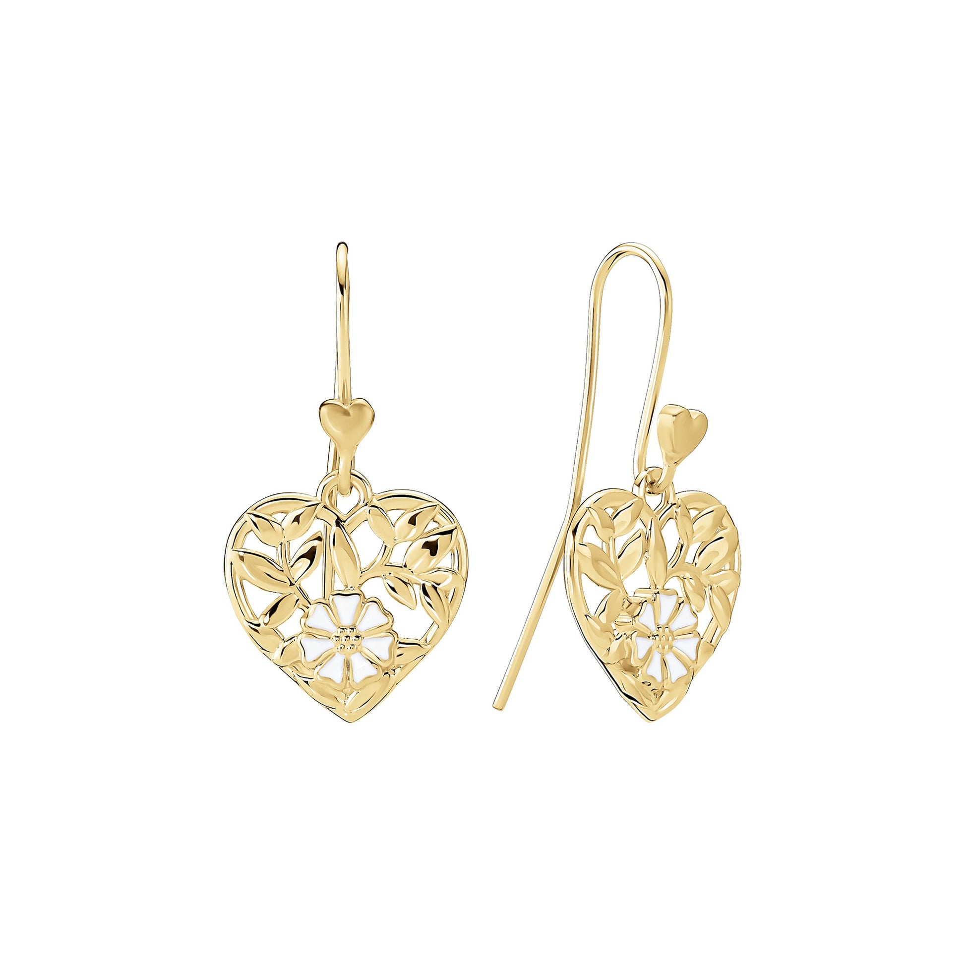 Marguerit ørehænger, hjerte,24 kt guldbelagt sølv med hvid emalje