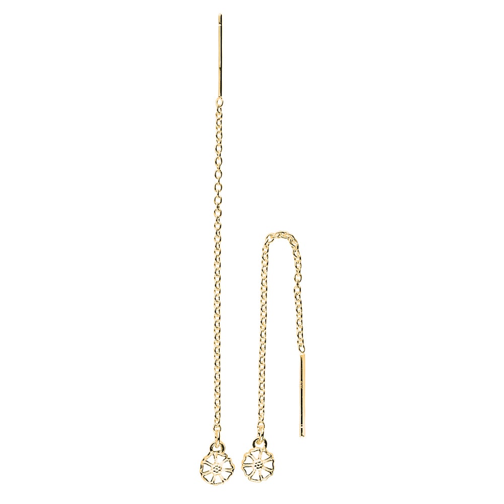 Marguerit ørehænger, mikro, 24 kt guldbelagt sølv med hvid emalje