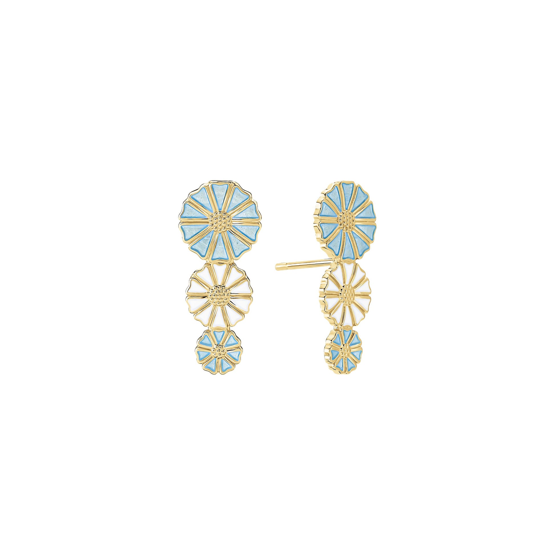 Marguerit ørestik med 9+7,5+5mm 24kt forgyldt med lyseblå emalje 925 sølv.
