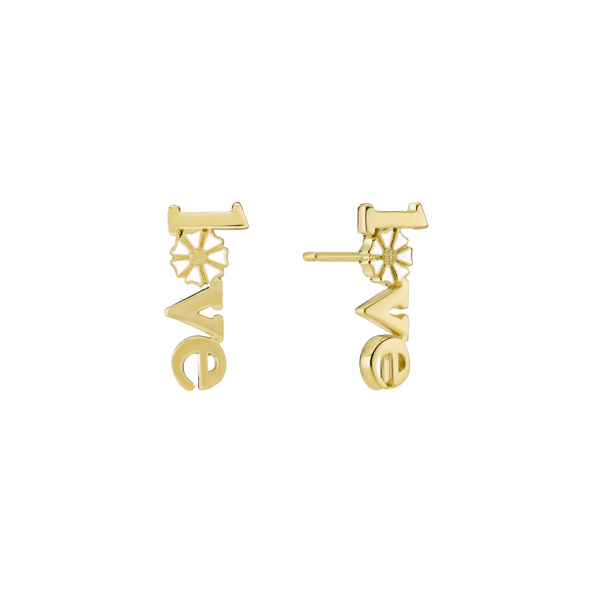Marguerit ørestik 5 mm love 24kt forgyldt hvid emalje 925 sølv