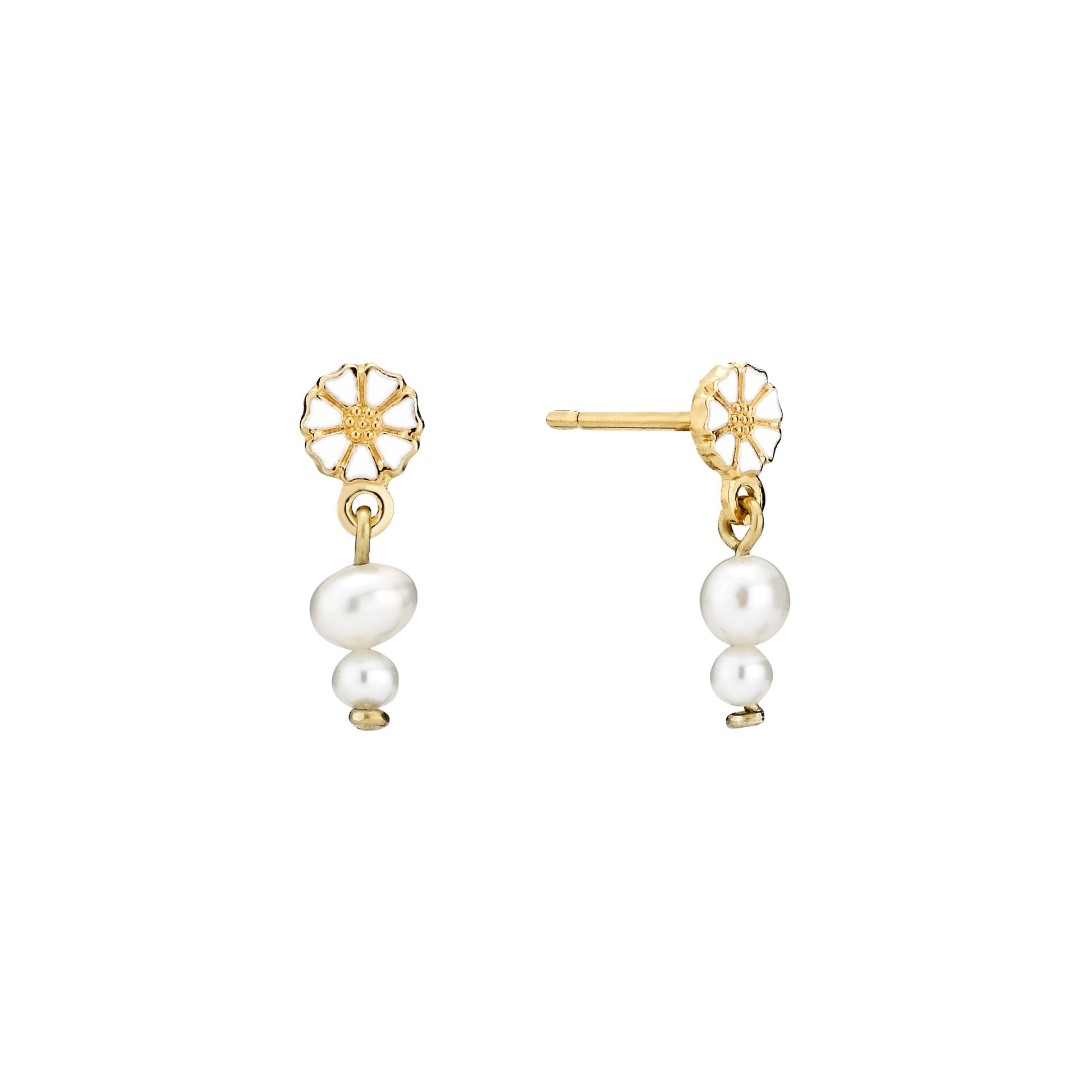 Marguerit ørestik, 5 mm med ferskvandsperle, 24 kt guldbelagt sølv hvid emajle 925