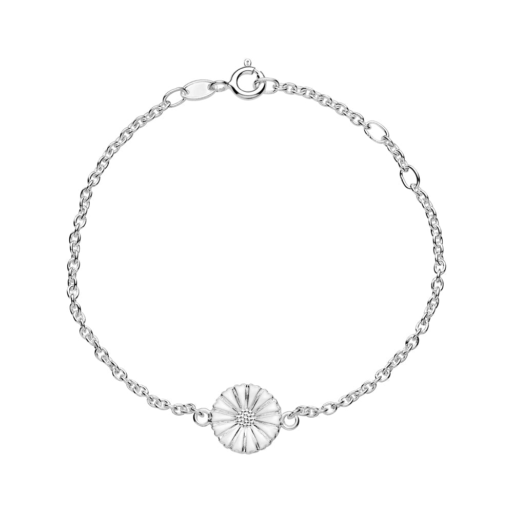 Marguerit sølvarmbånd 11mm hvid emalje 16-17-19 cm