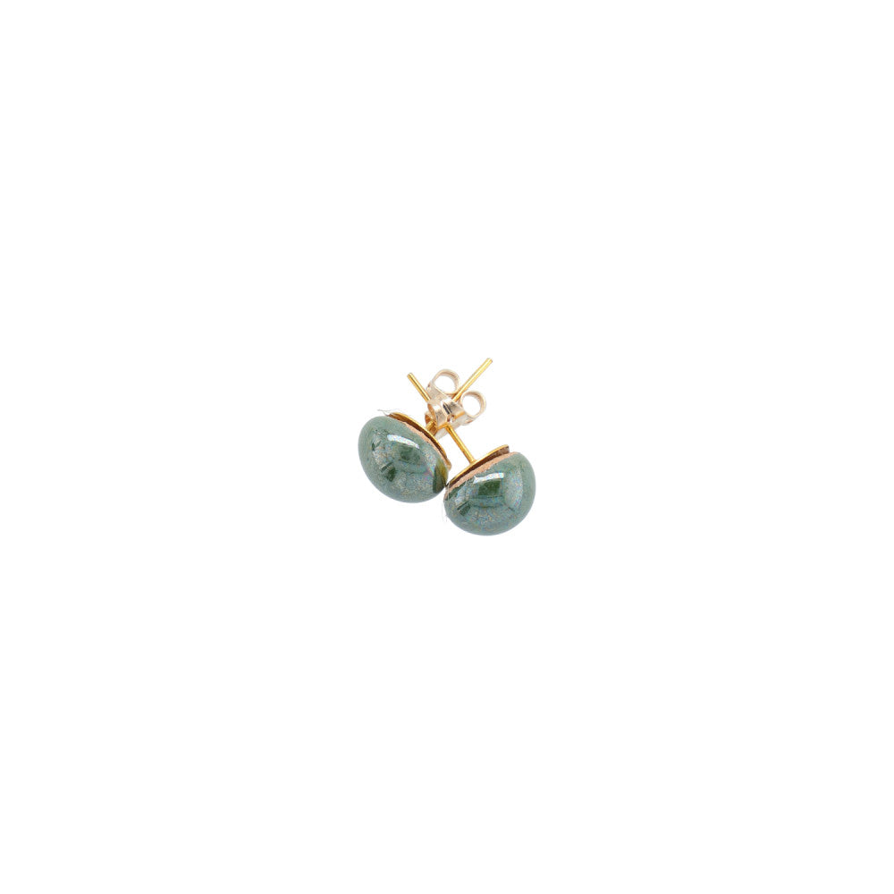 Smukke keramik øreringe i en mørkgrøn farve med perlemor som matcher ethvert outfit. ( sæt a´ 2 stk ) Perle str: Ca 8 mm.