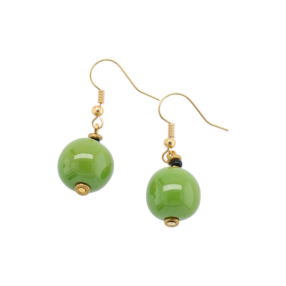 Smukke keramik øreringe i lysgrøn som matcher ethvert outfit. ( sæt a´ 2 stk ) Perle str: Ca 10 mm.