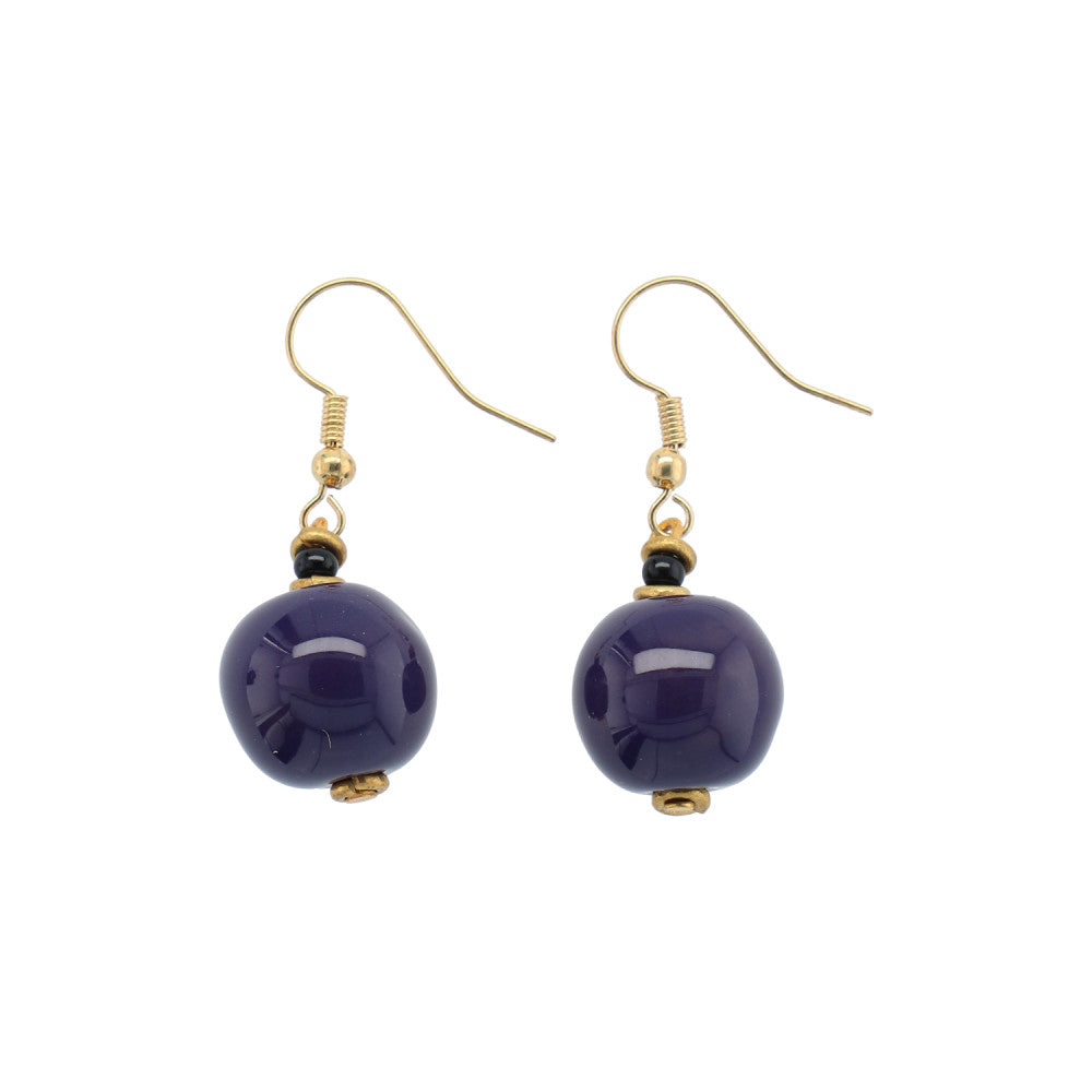 Smukke keramik øreringe i mørk lilla som matcher ethvert outfit. ( sæt a´ 2 stk ) Perle str: Ca 14 mm.