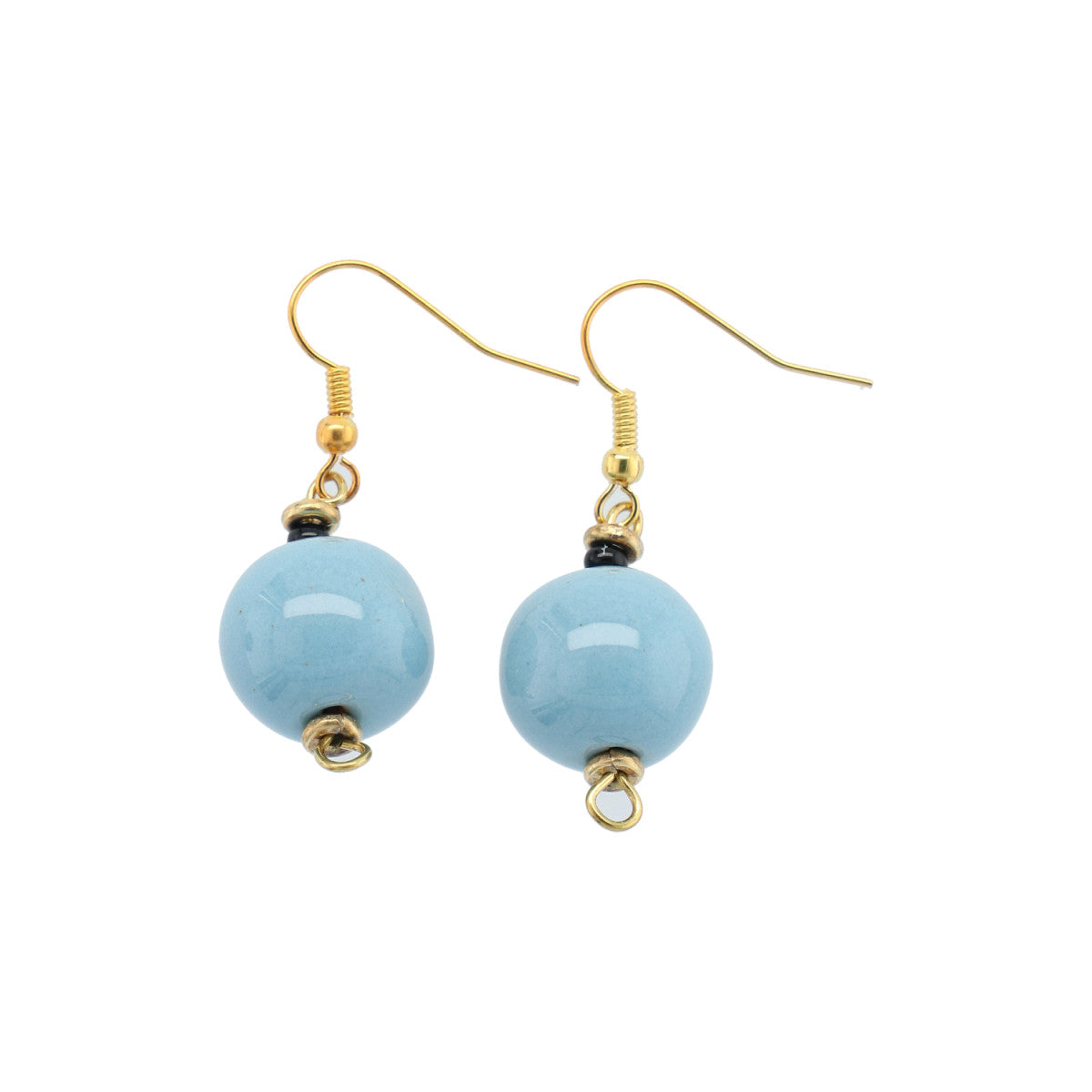 Smukke keramik øreringe i lysblå som matcher ethvert outfit. ( sæt a´ 2 stk ) Perle str: Ca 10 mm.