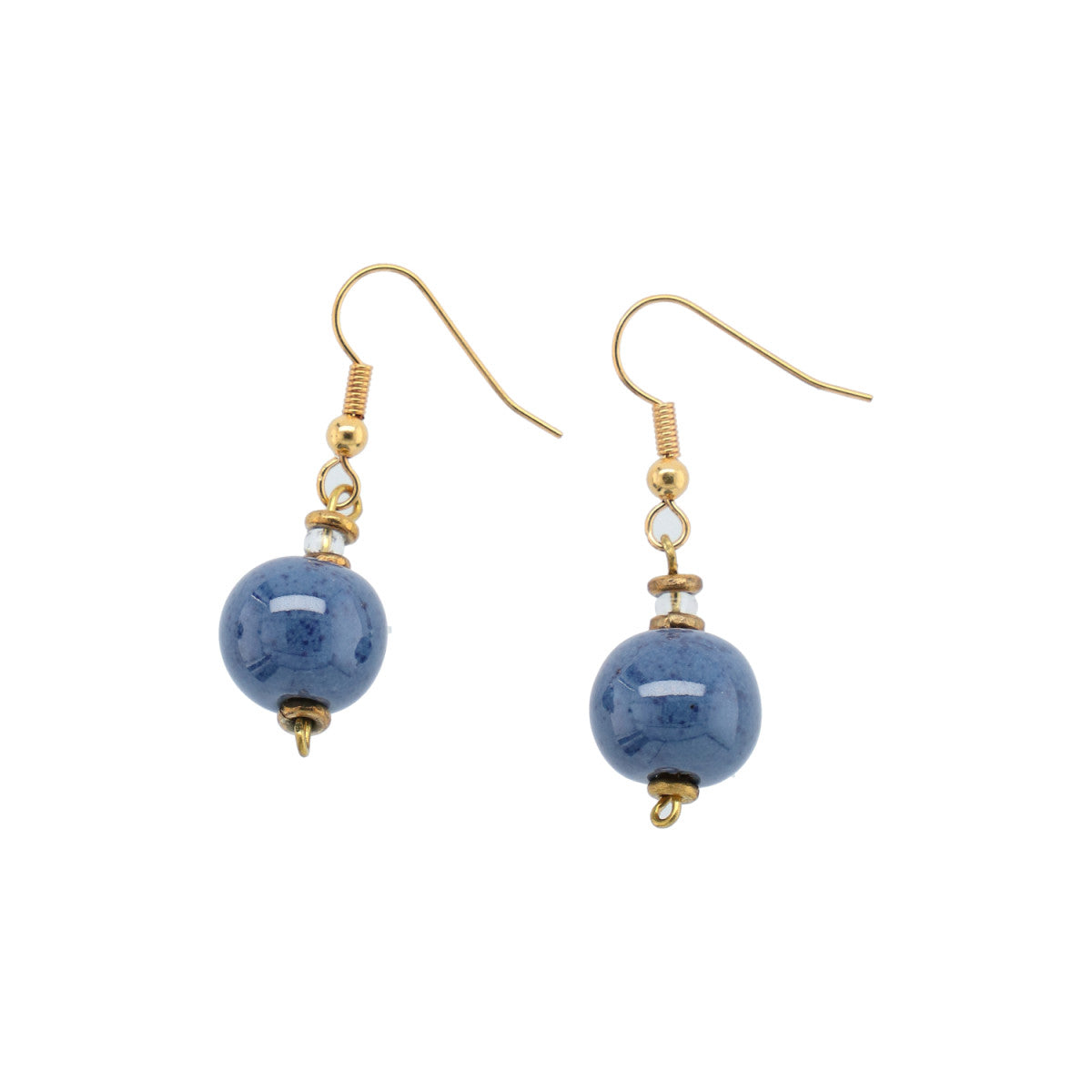 Smukke keramik øreringe i en lækker blå farve som matcher ethvert outfit. ( sæt a´ 2 stk ) Perle str: Ca 10 mm.