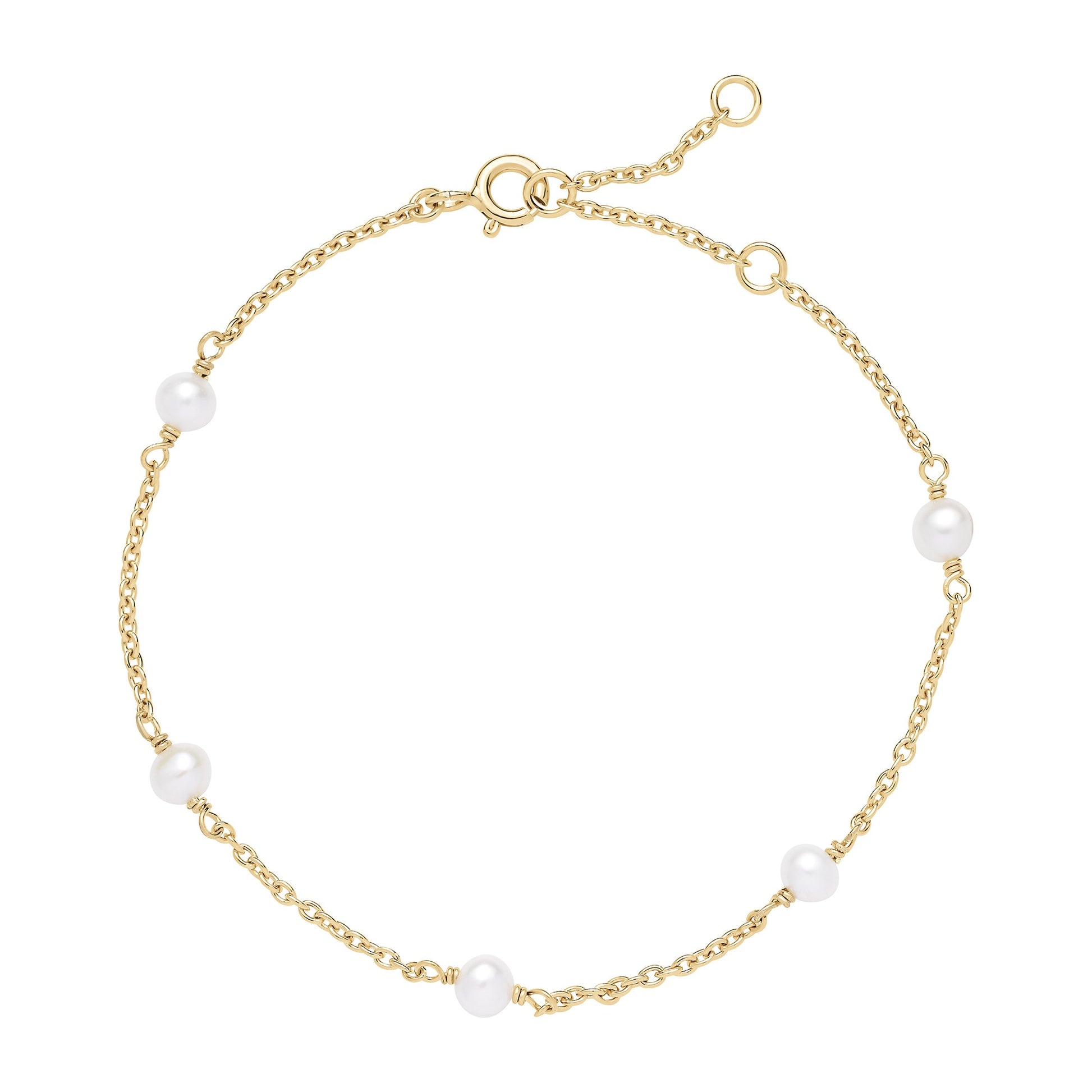 Armbånd med 5 ferskvandsperler 4-4,5mm 16-17,5-19cm forgyldt 925