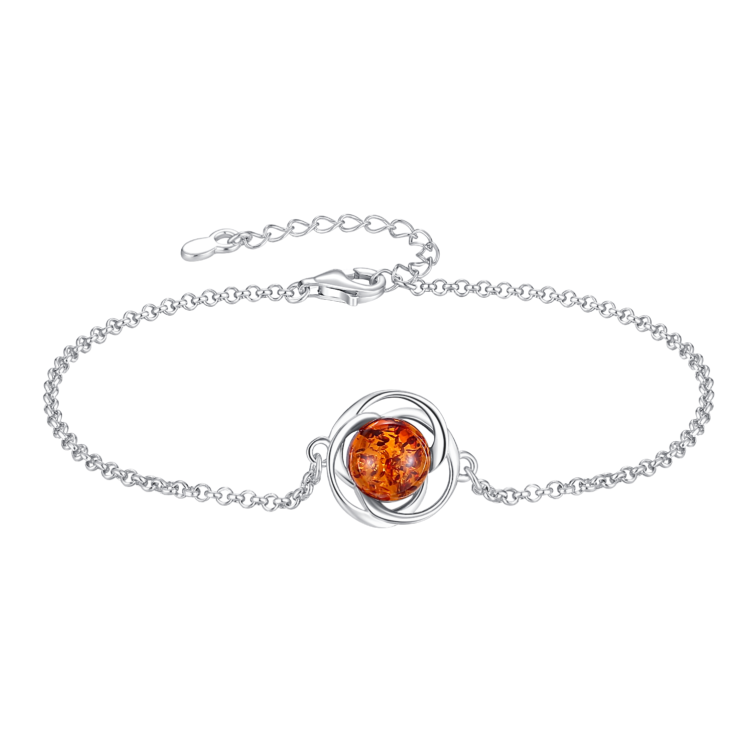 Sølv armbånd rhodineret flettet blomst med rund rav i midten