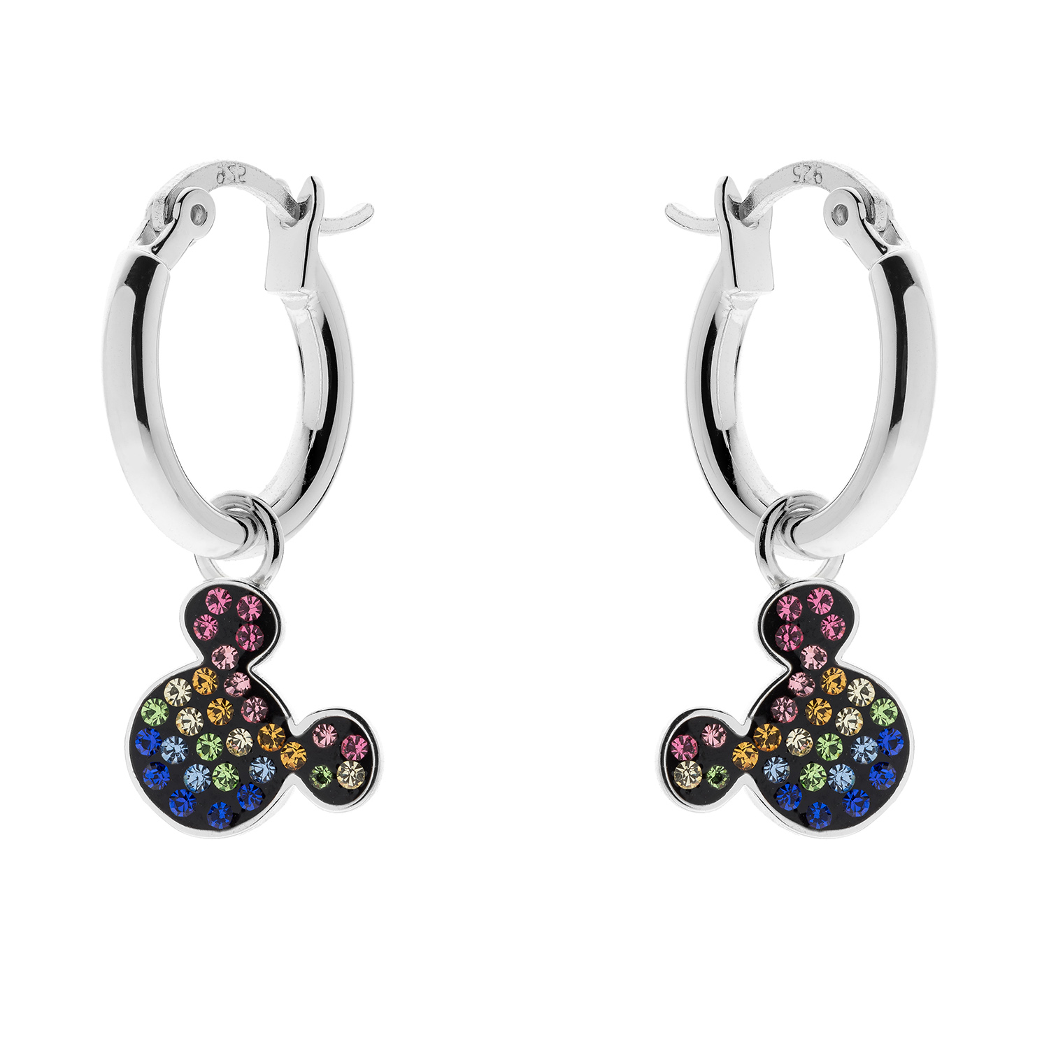 Sølv creoler Mickey Mouse med forskellige farver som hænger.