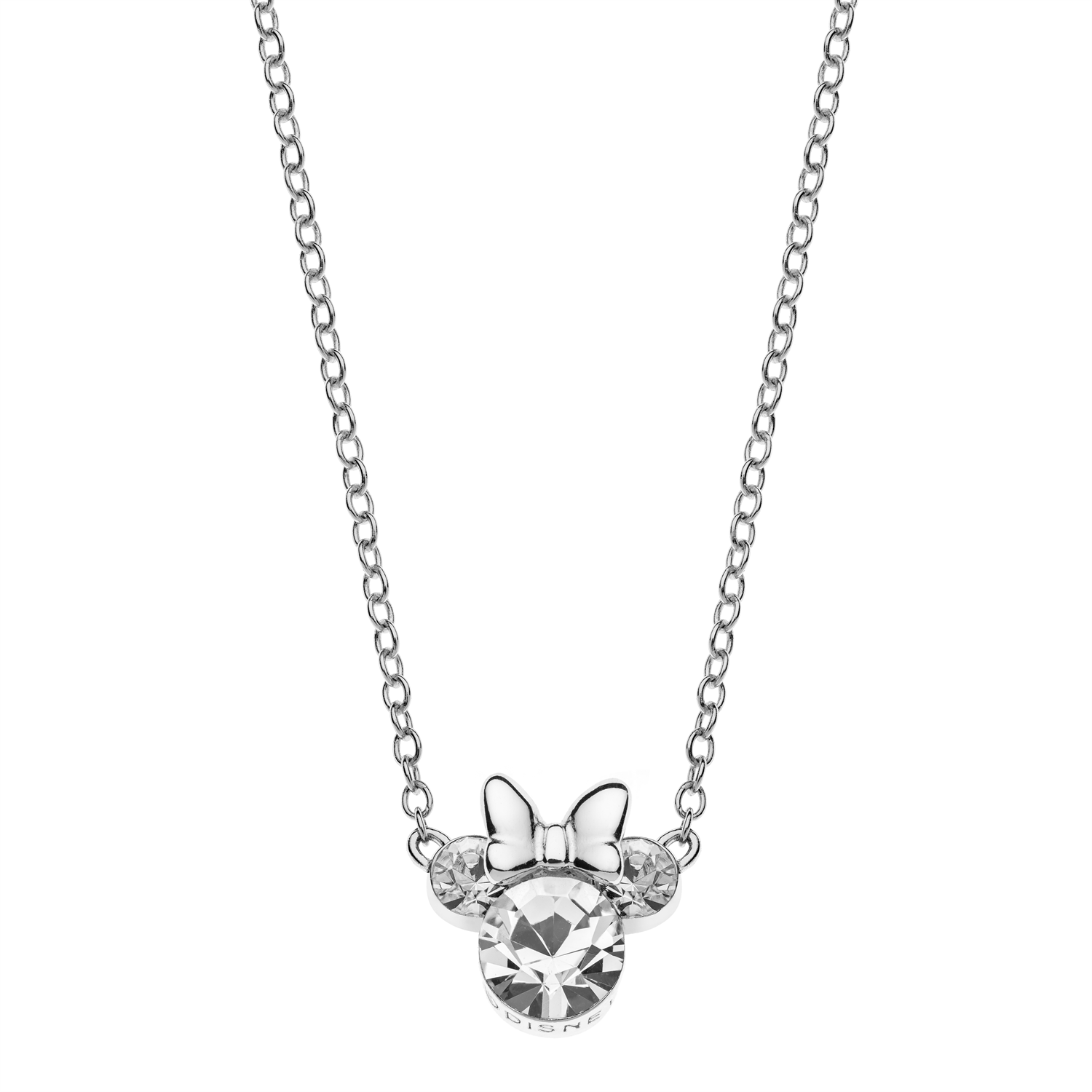 Sølv halskæde Minnie med en stor og 2 små syntetiske diamanter & Sølv sløjfe. - April måned.