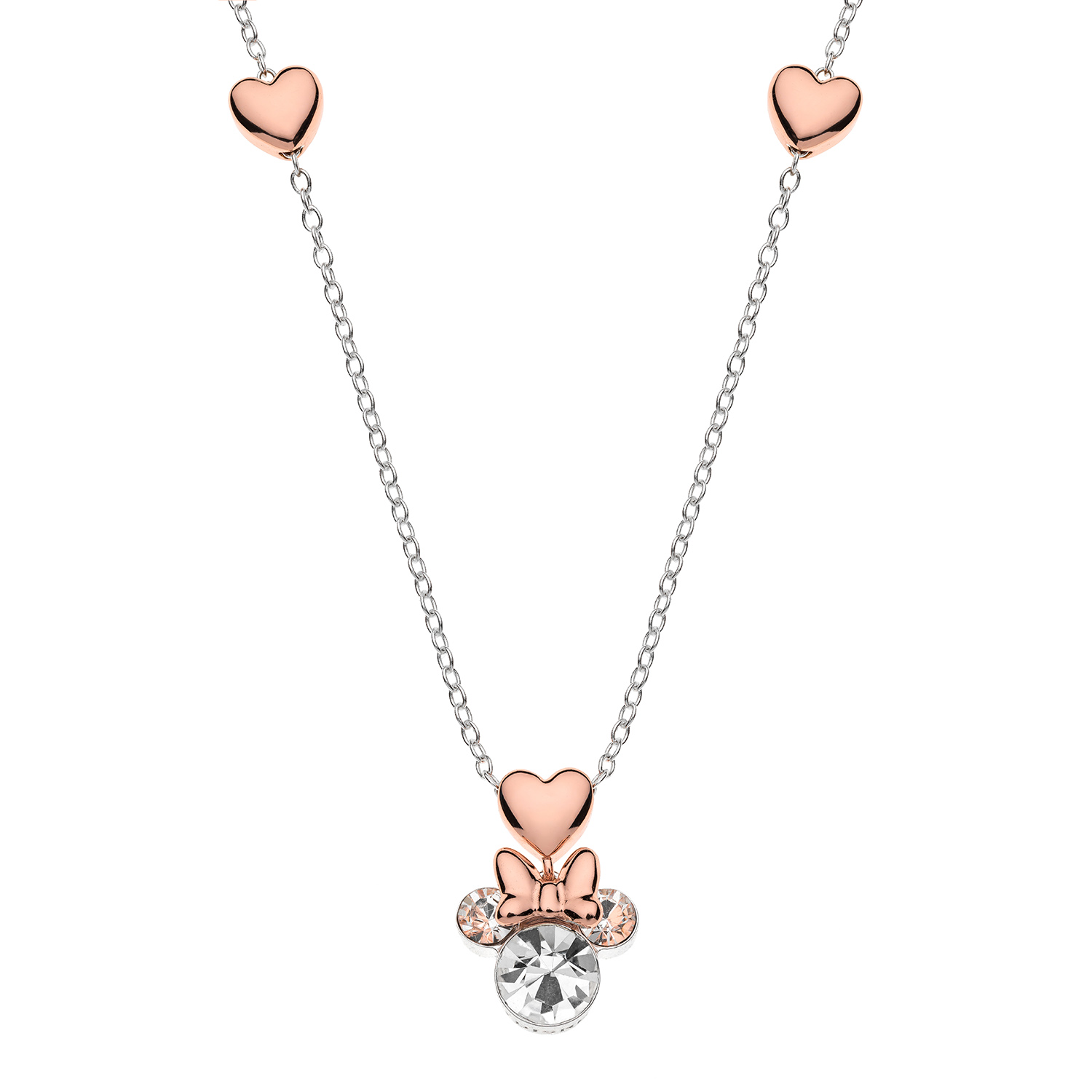 Sølv halskæde Minnie Mouse med rosa hjerte og sløjfe.