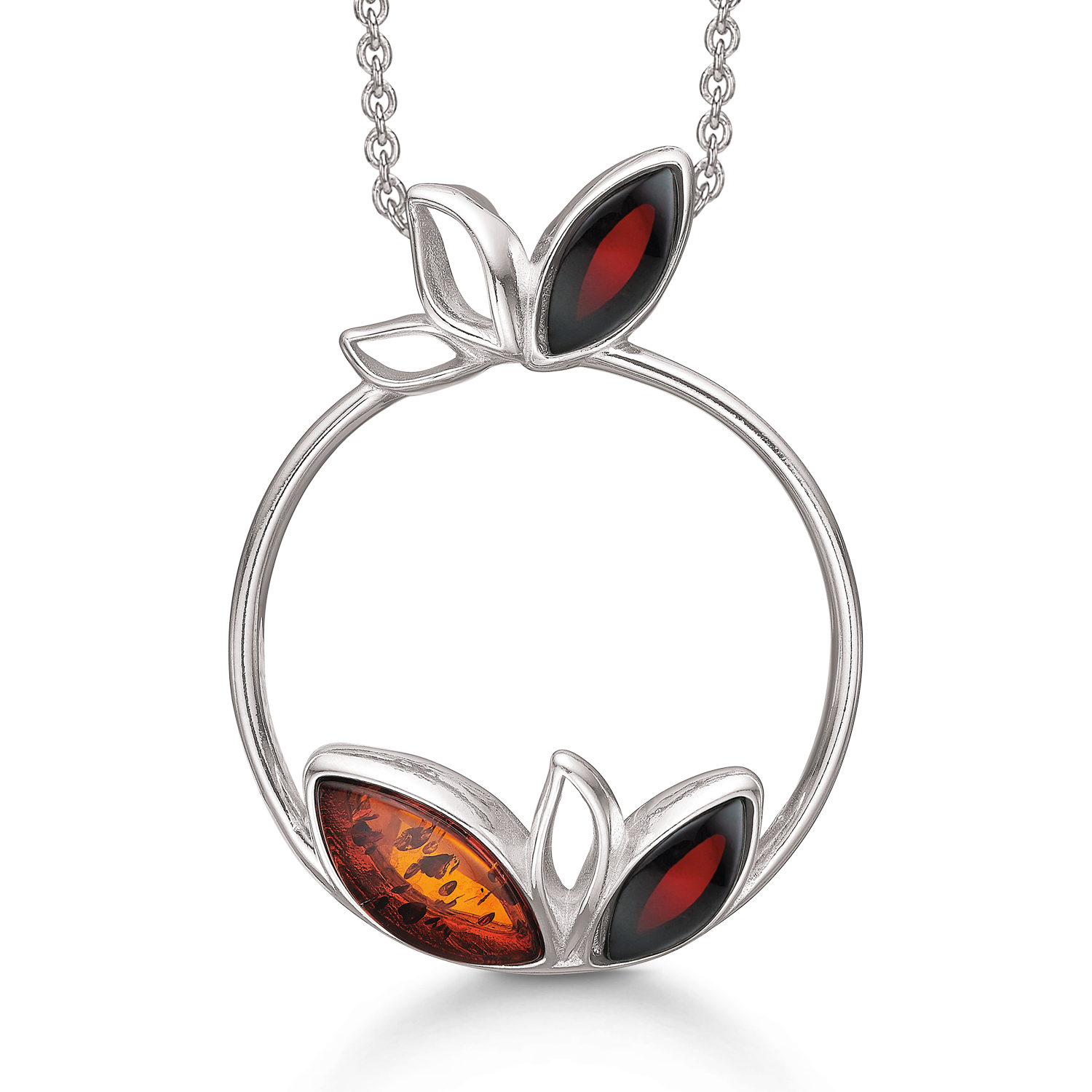 Sølv halskæde rhodineret 6 blade 3 er med rav på cirkel