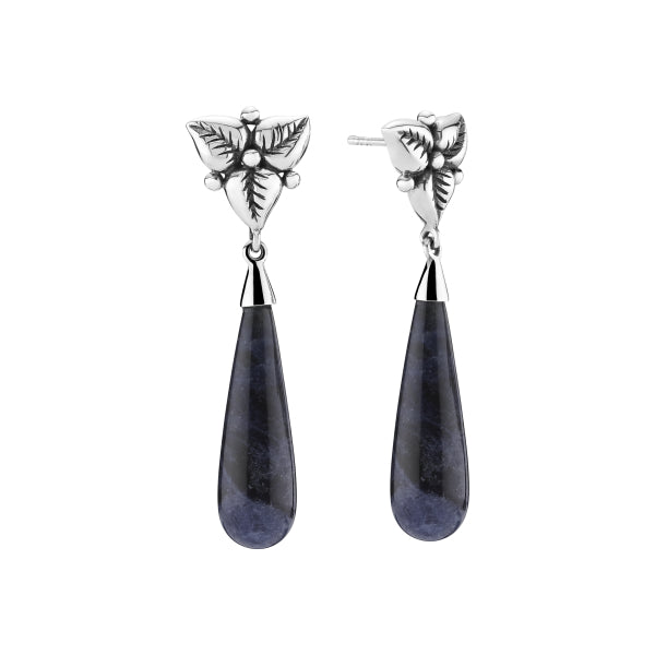 Ørestik med blomst og sodalit dråbe ox 13 mm X45 mm 925