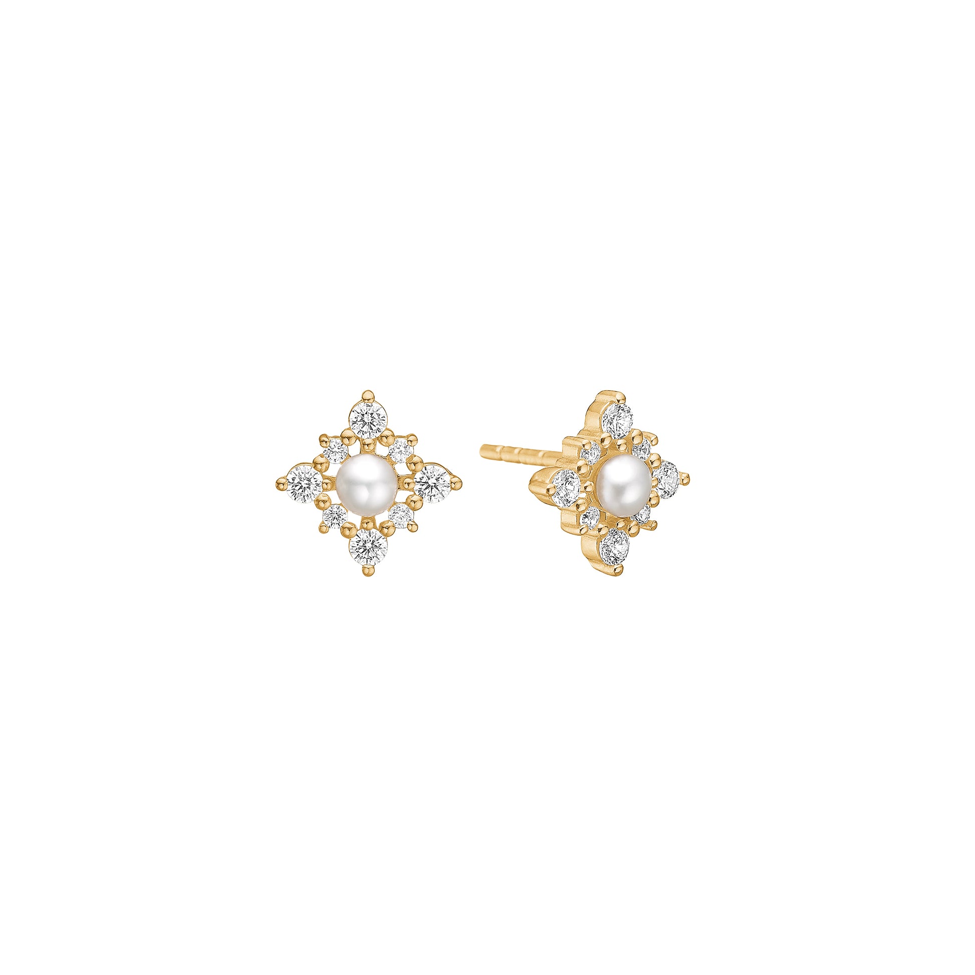 Ørestik med ferksvandsperle 3-3,5 mm og zirkonia 1,3 mm forgyldt 925
