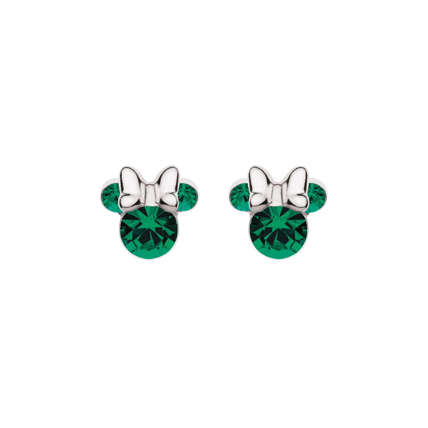 Sølv ørestikker Minnie med en stor og 2 små syntetiske smaragder & Sølv sløjfe. - Maj måned.