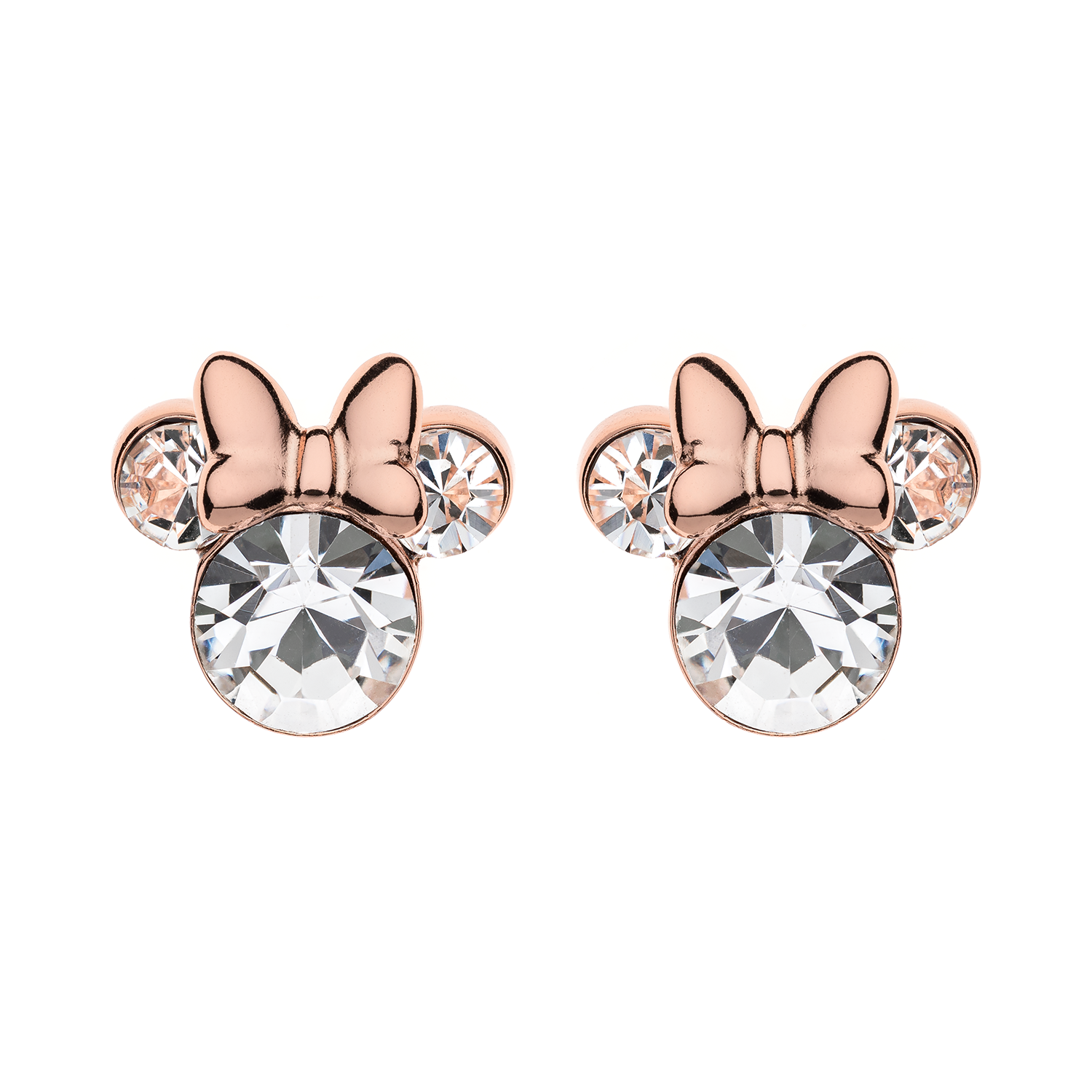 Sølv ørestikker Minnie med en stor syntetisk cubic zirconia som ansigt med rosa sløjfe.