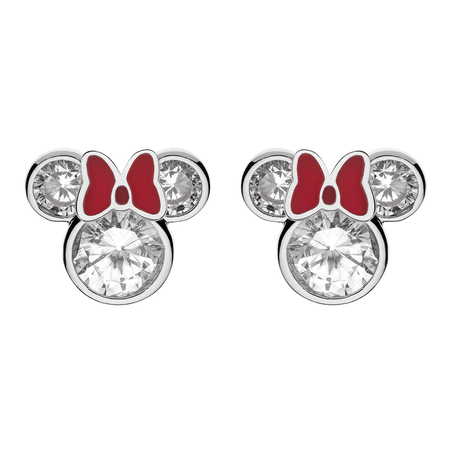 Sølv ørestikker Minnie Mouse rød sløjfe med syntetiske cubic zirconia.