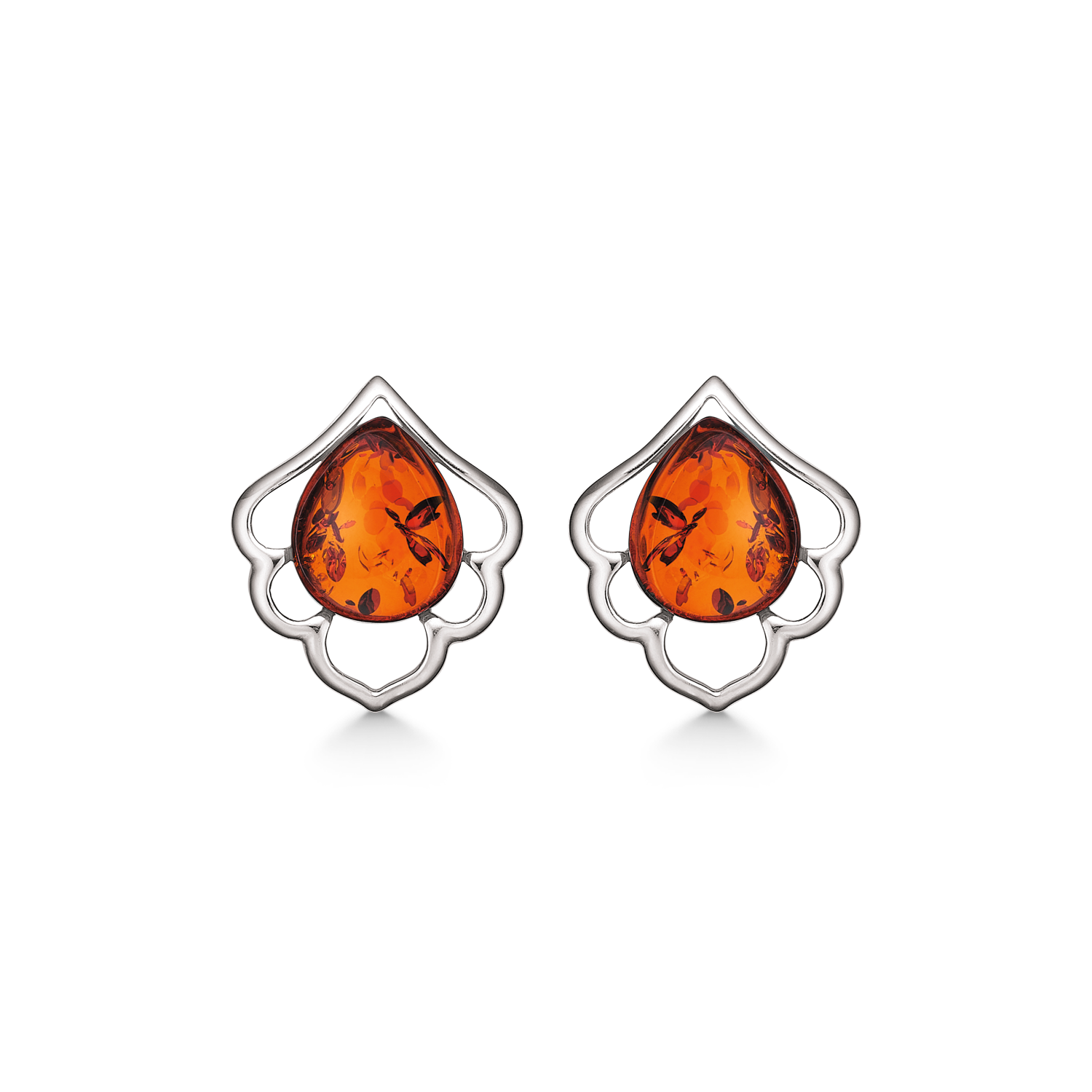 Sølv ørestikker rhodineret dråbe med mønster rundt om.