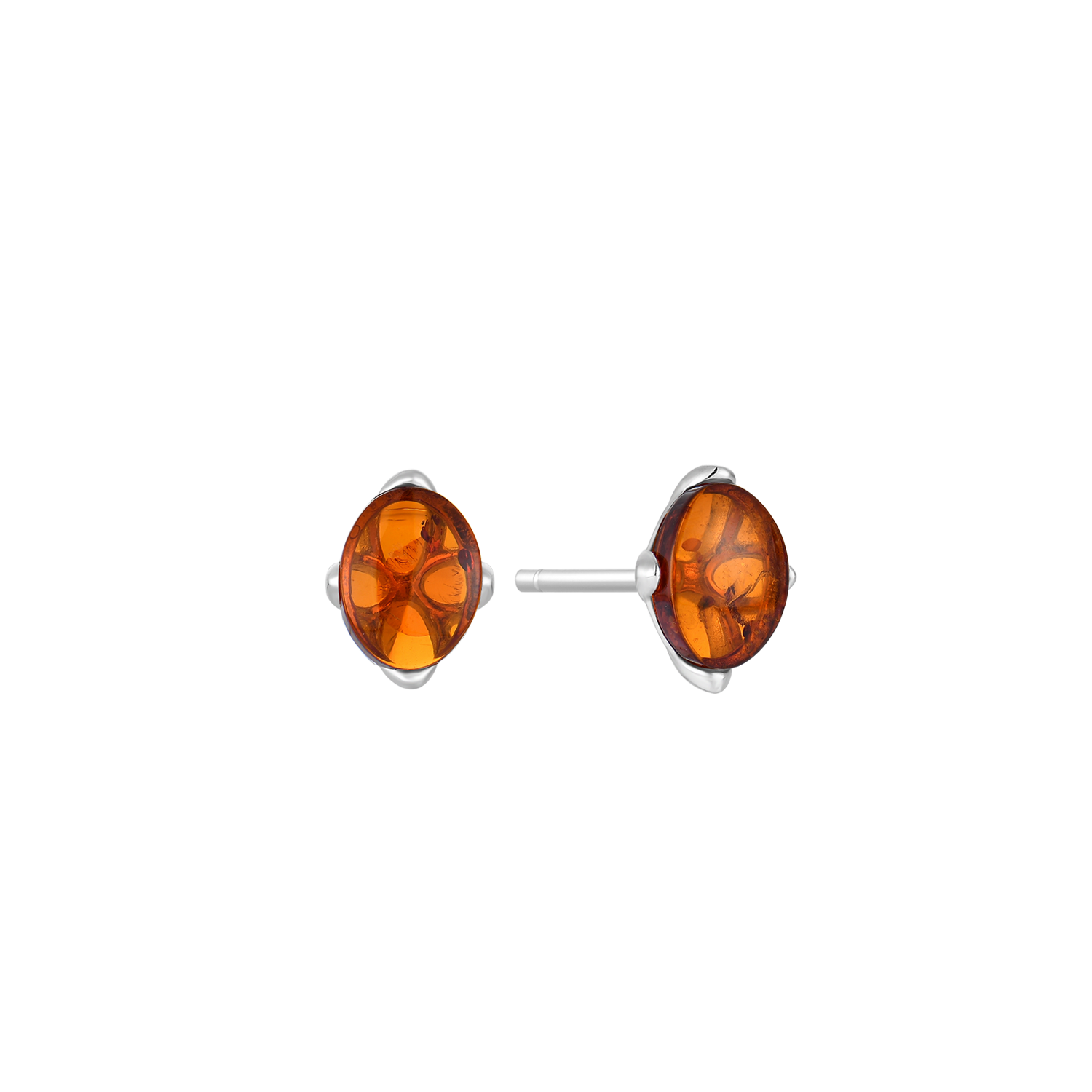Sølv ørestikker rhodineret oval rav i 4 grabber.