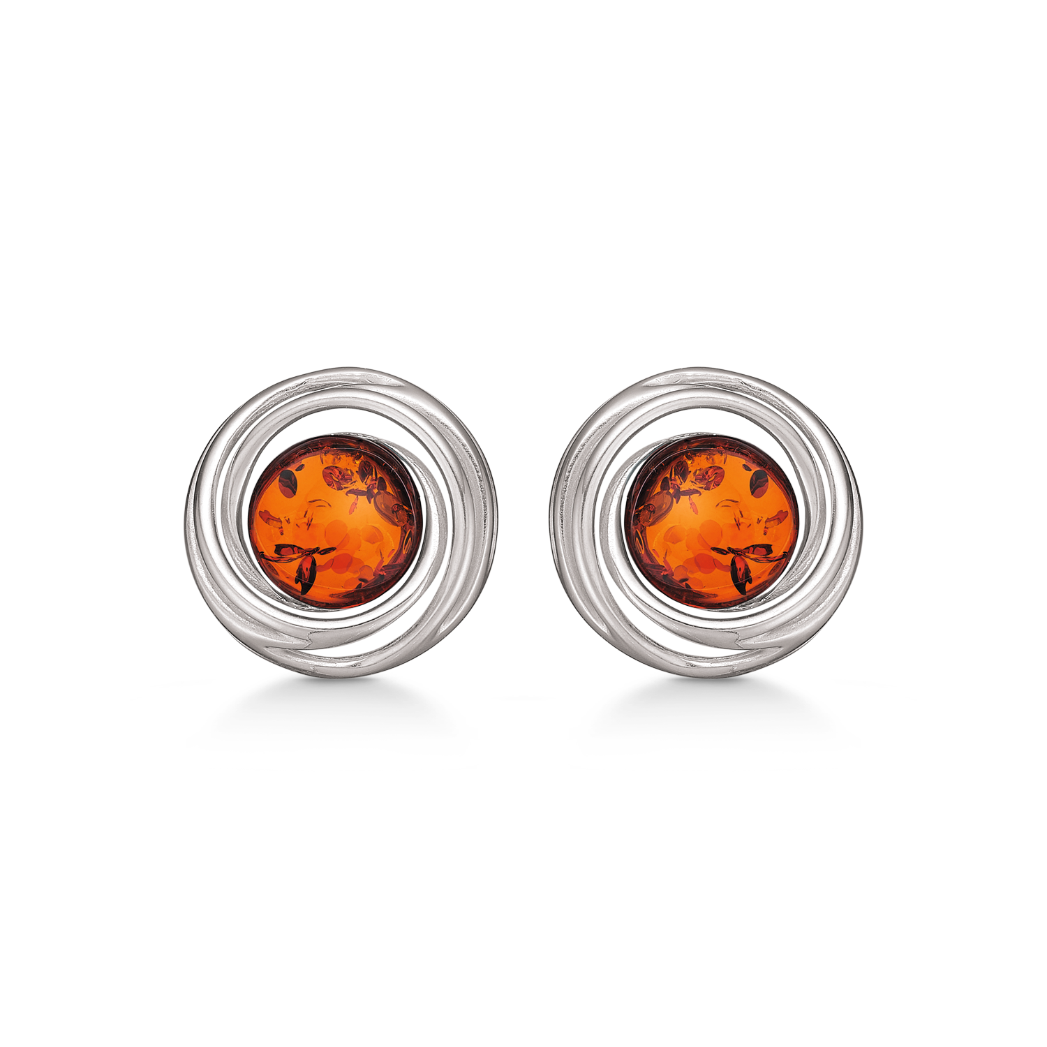Sølv ørestikker rhodineret rav i ring med dobbelt ring omkring