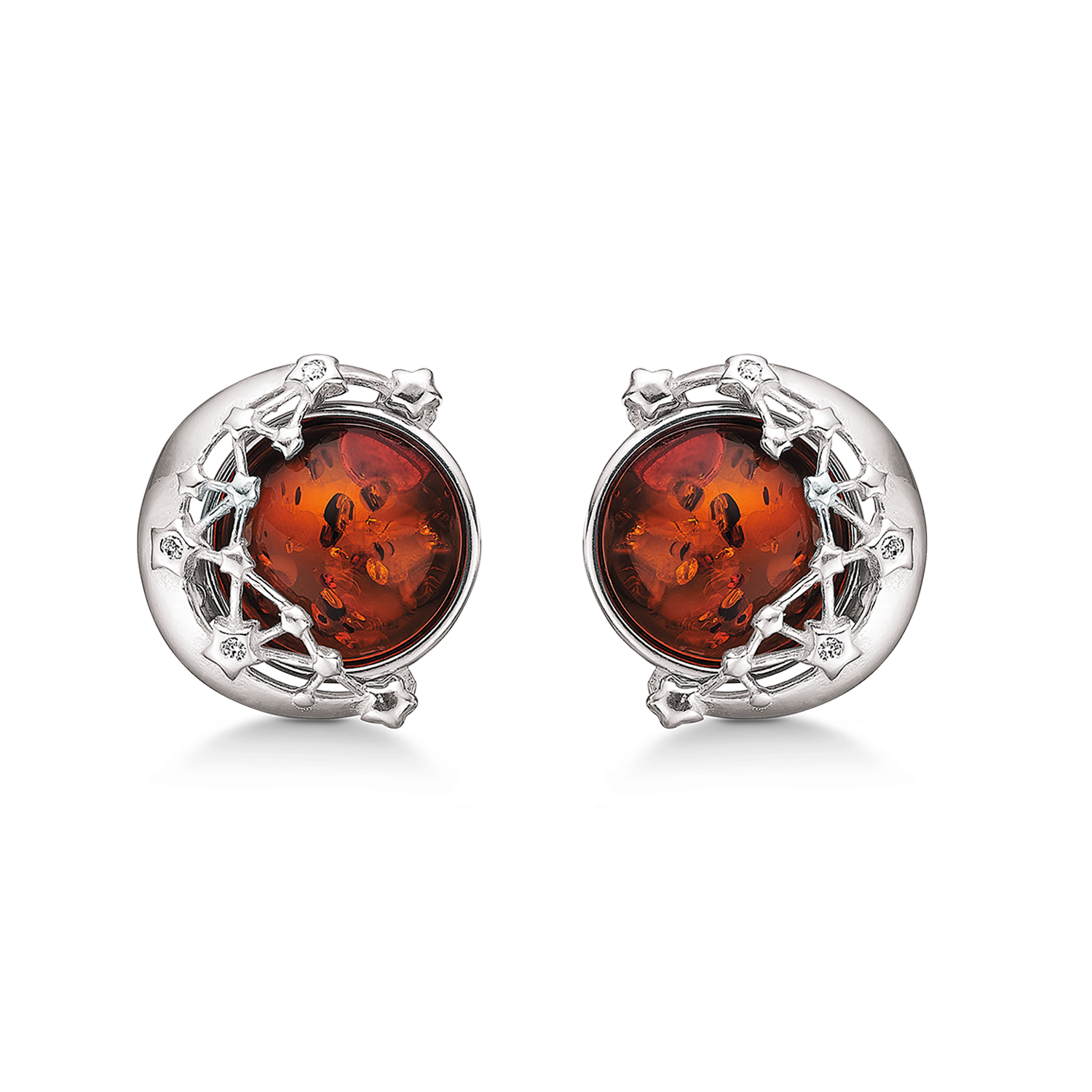 Sølv ørestikker rhodineret rund rav med mønster i den ene side