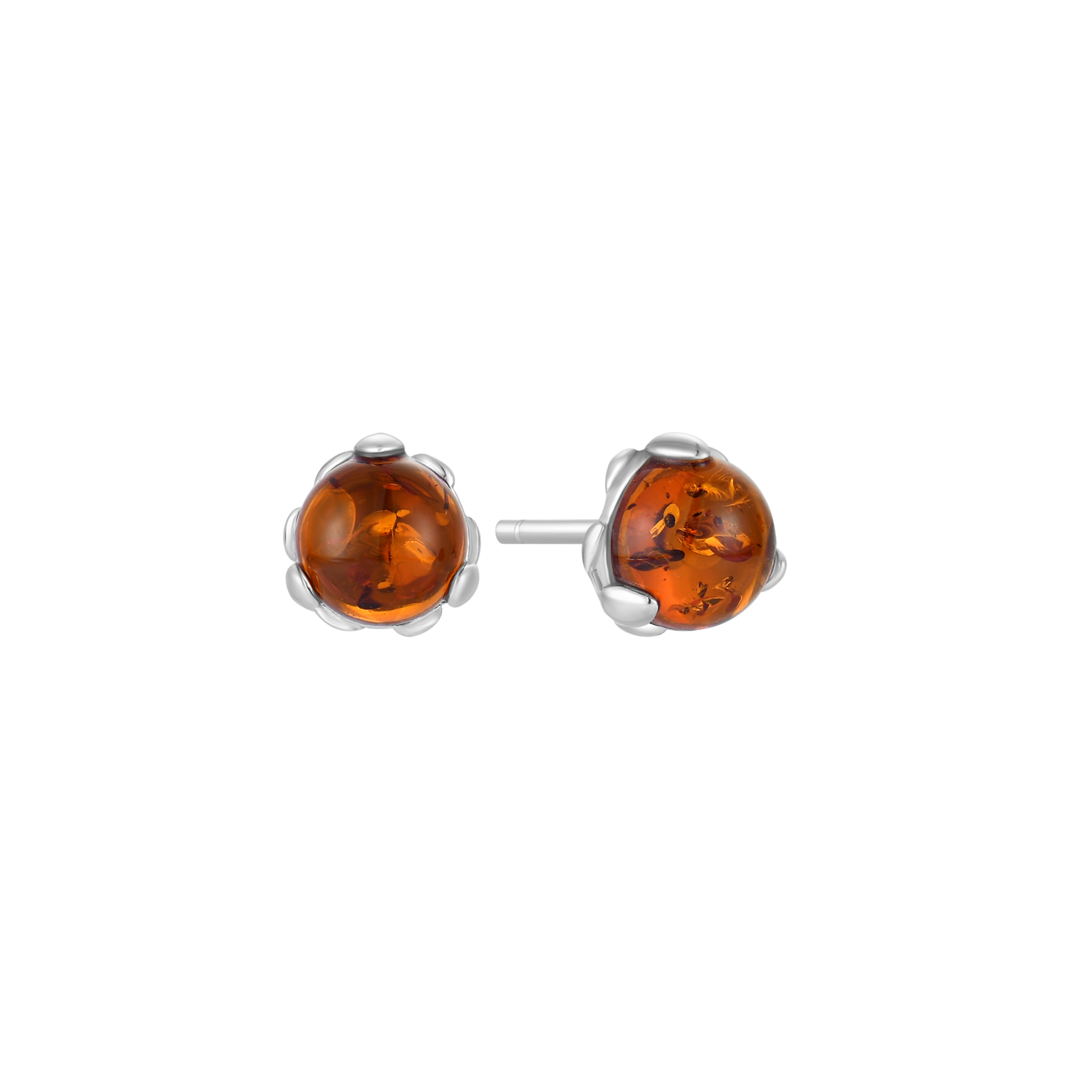 Sølv ørestikker rhodineret rundt kugle i rav.