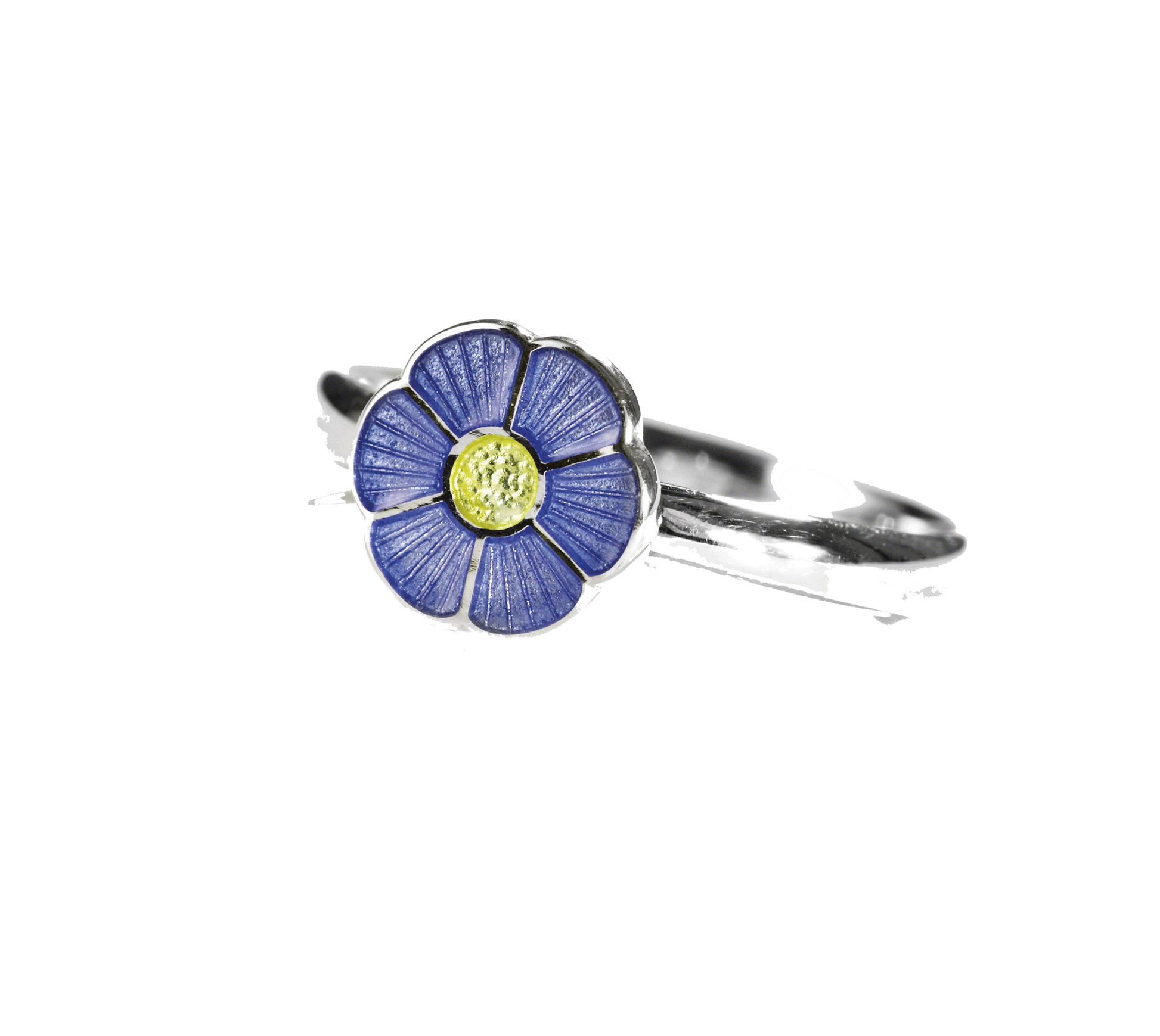 Sølvring, Forglem-mig-ej med blå og gul emalje